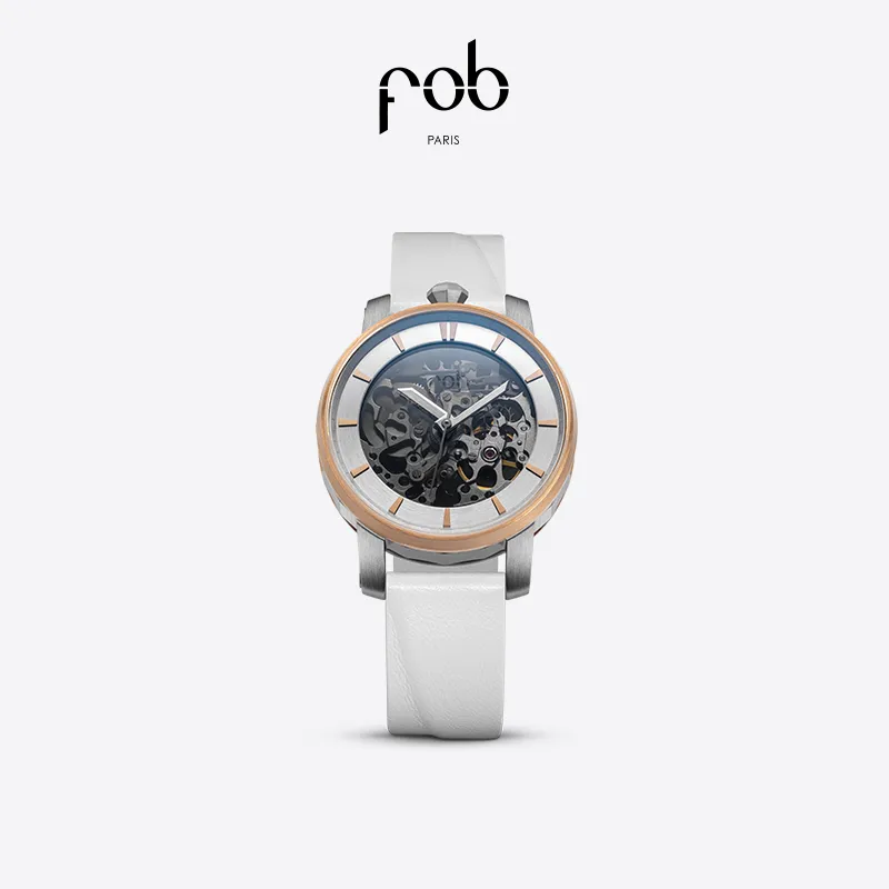 FOB Наручные часы Автоматический Механический Механизм Кожаный Ремешок 36 мм Черепный Циферблат Женские Часы