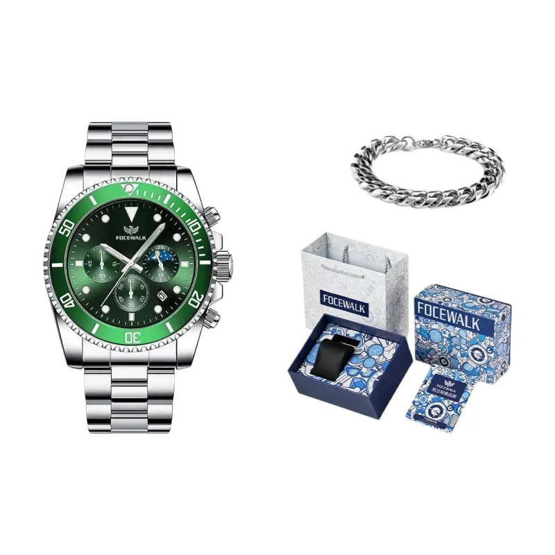 Комплект:FW9606G2 Серебристый корпус, зеленый циферблат, серебряный стальной браслет [комплект браслета]