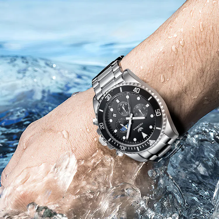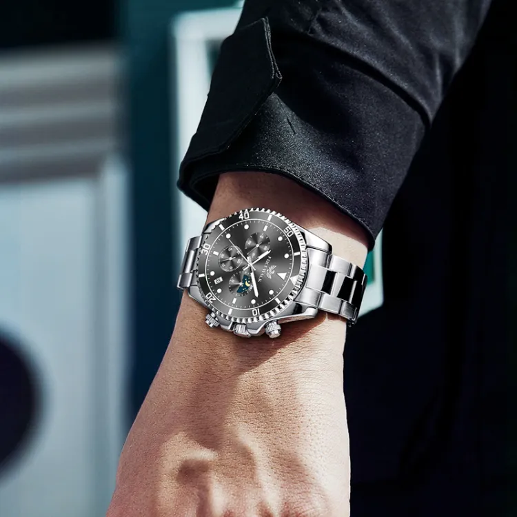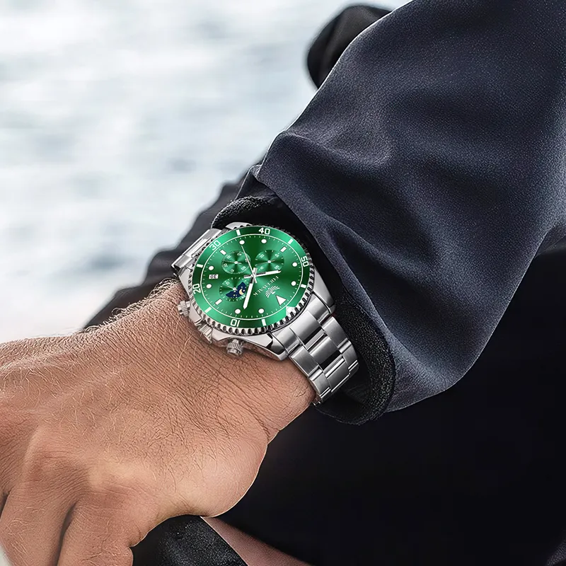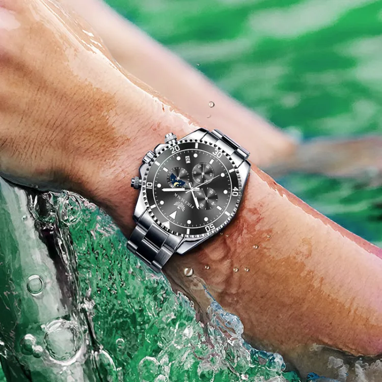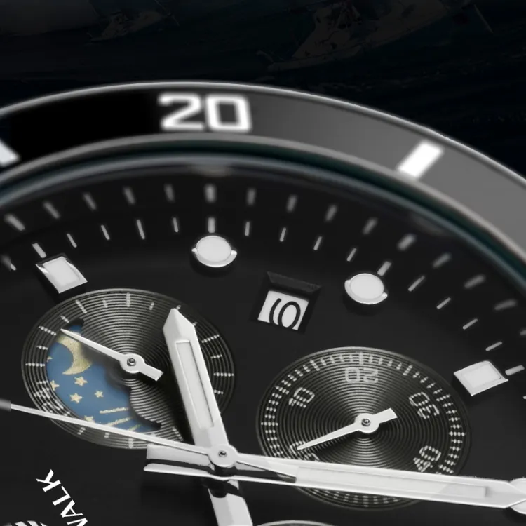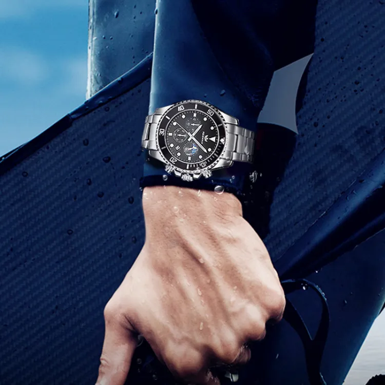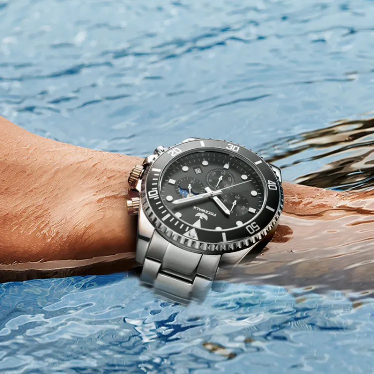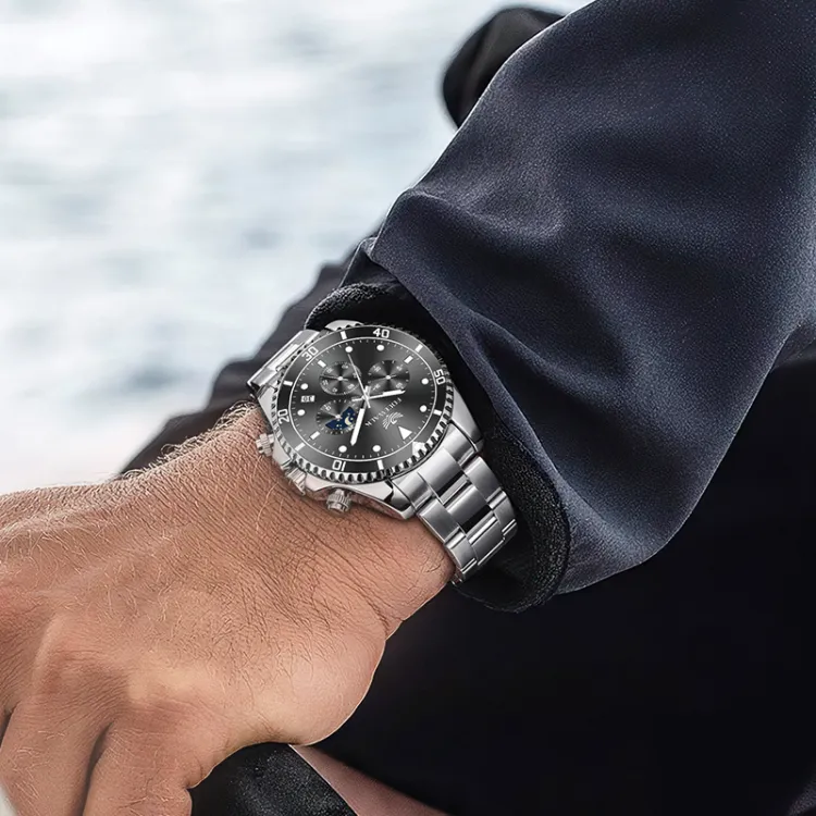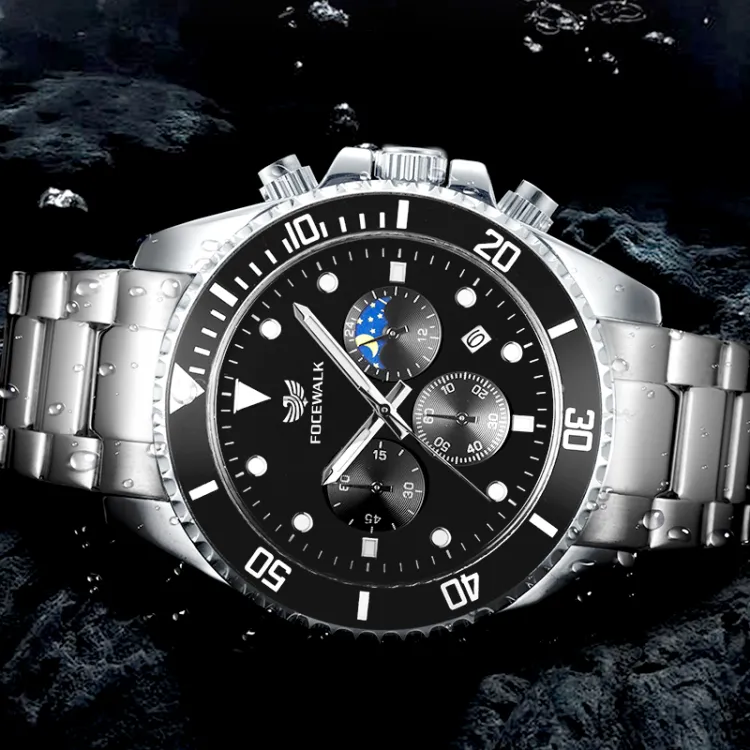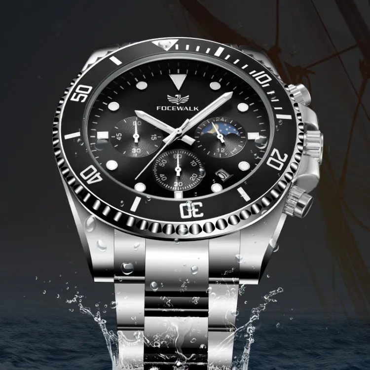 FOCEWALK Navigator Collection Кварцевый механизм ремешок из нержавеющей стали черный циферблат мужские часы