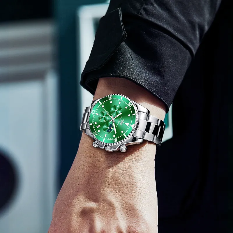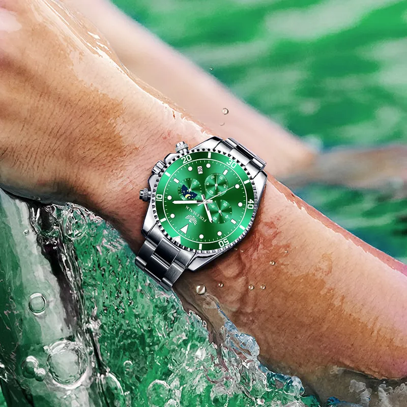 FW9606G2 Серебристый корпус, зеленый циферблат, серебряный стальной браслет [комплект браслета]