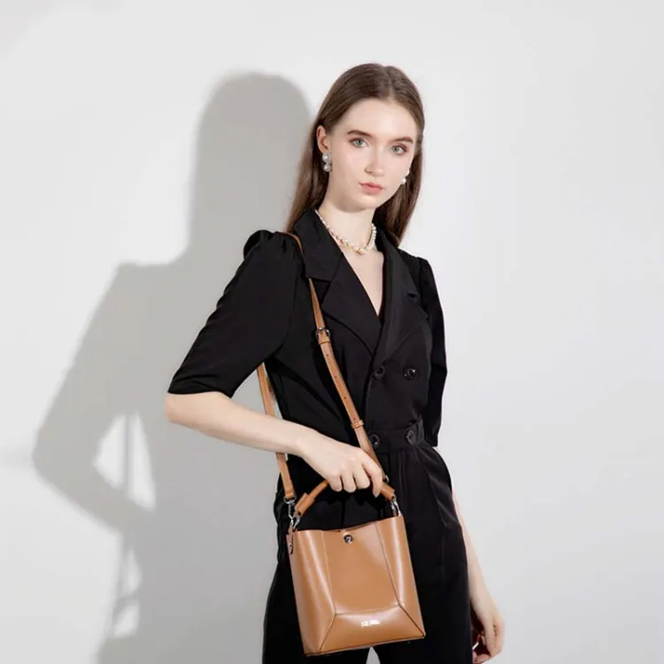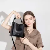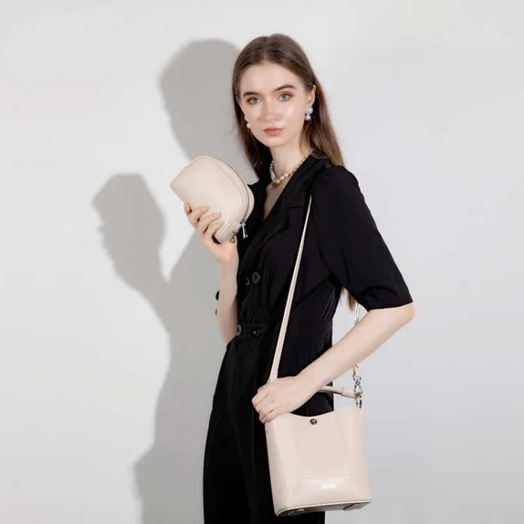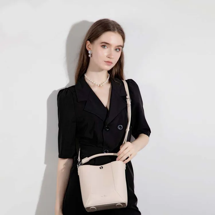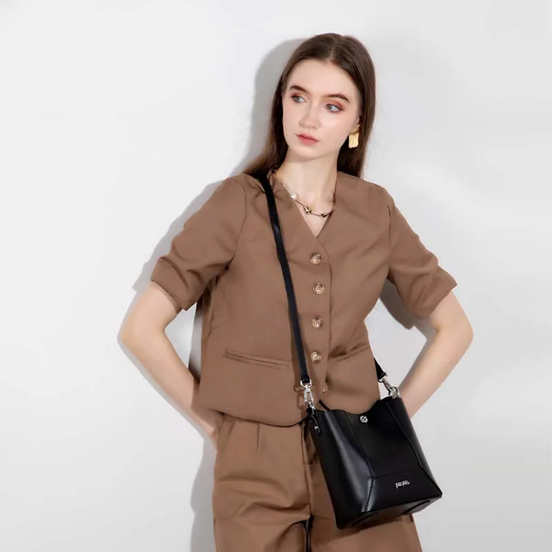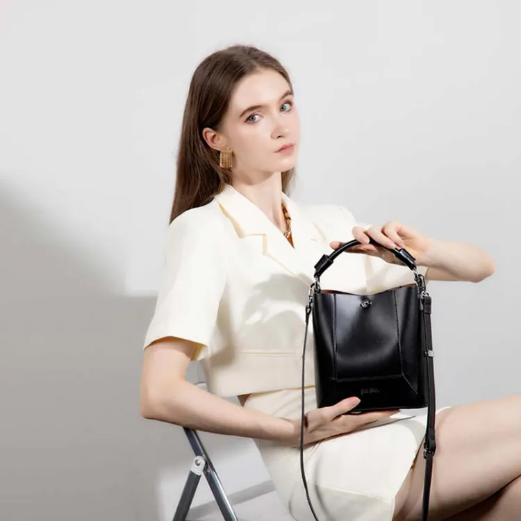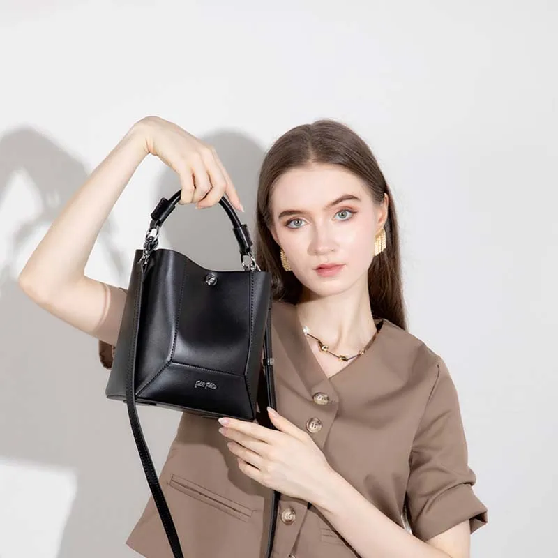 Folli Follie Корова Кожа Ведро-Формовая Буква Сумка Ручная Сумка Сумка через плечо Мини Женская Черный Экрю Печенье