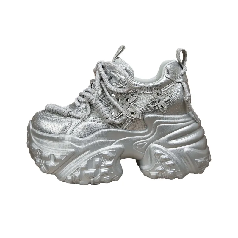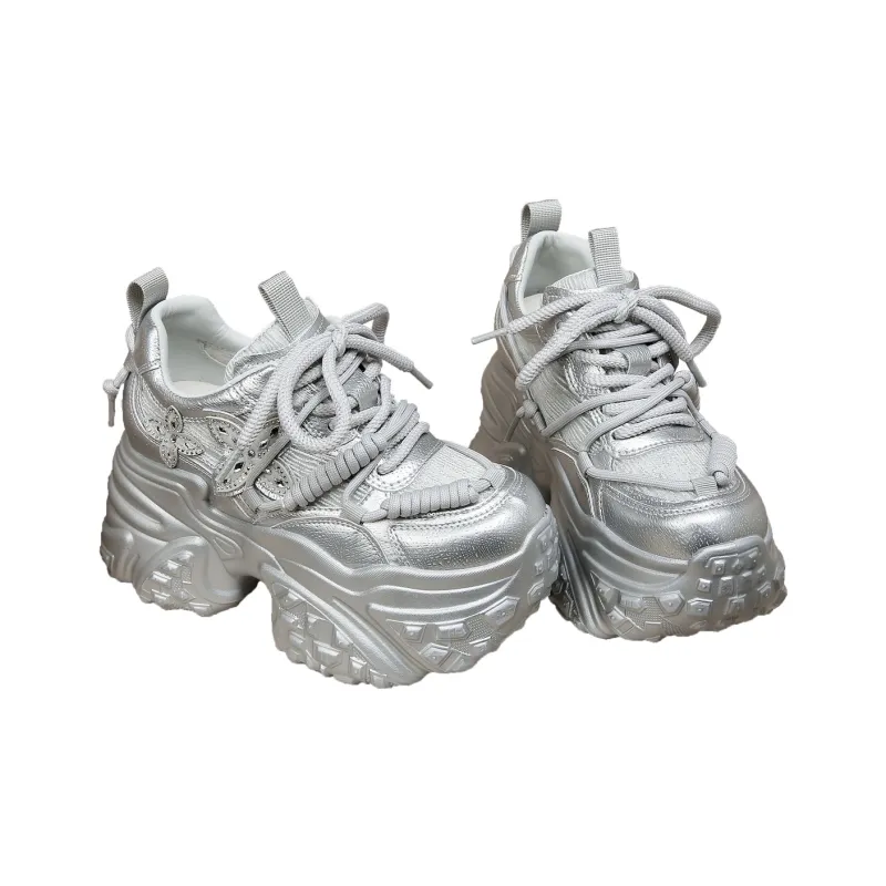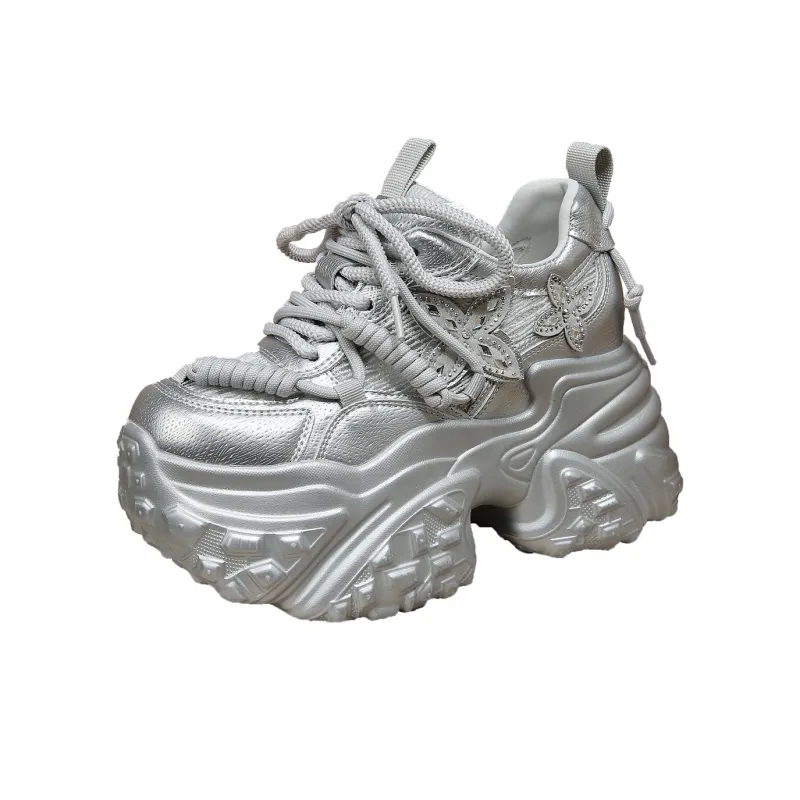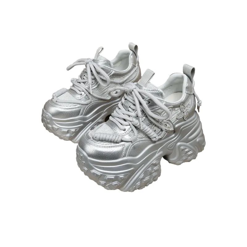 Forest Princess Дышащий Низкий Топ Кроссовки с Толстой Подошвой Женские Silver