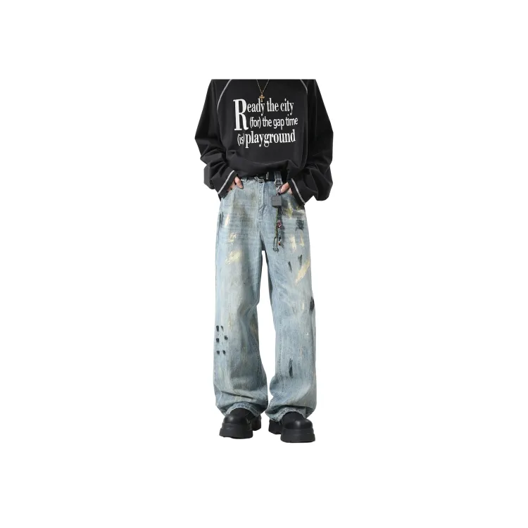 FOREVER 21 Джинсы унисекс с эффектом кляксов чернил, синий