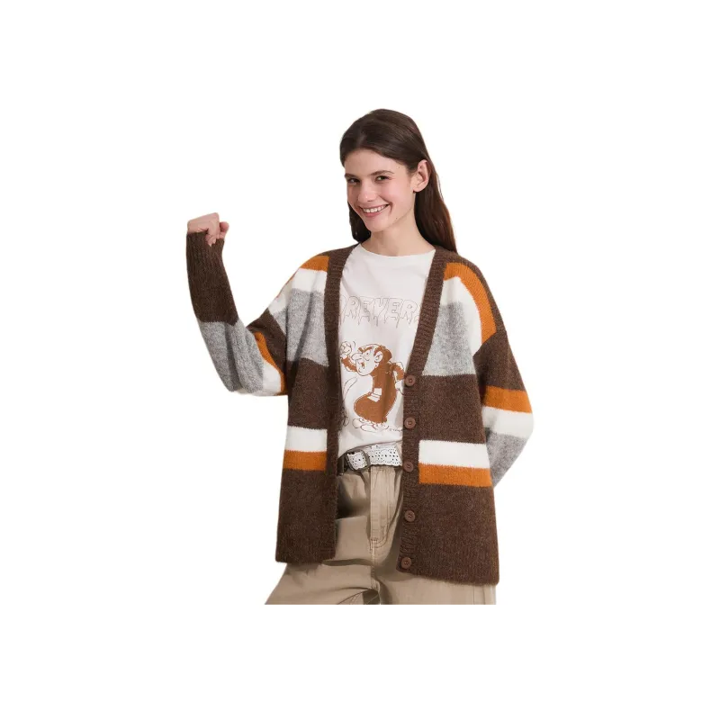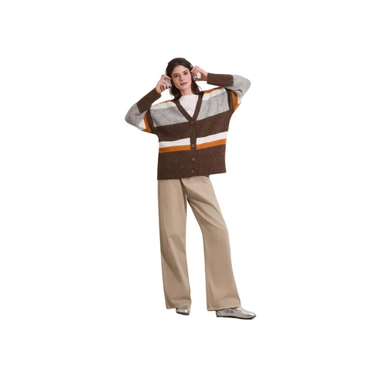 FOREVER 21 Кофейный Серый Полосы Женский Трикотаж