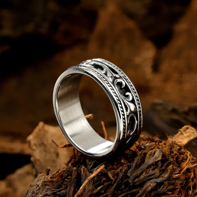 FOREVER MELODY Кольца из титанового стального сплава Мужские Серебряный Черный