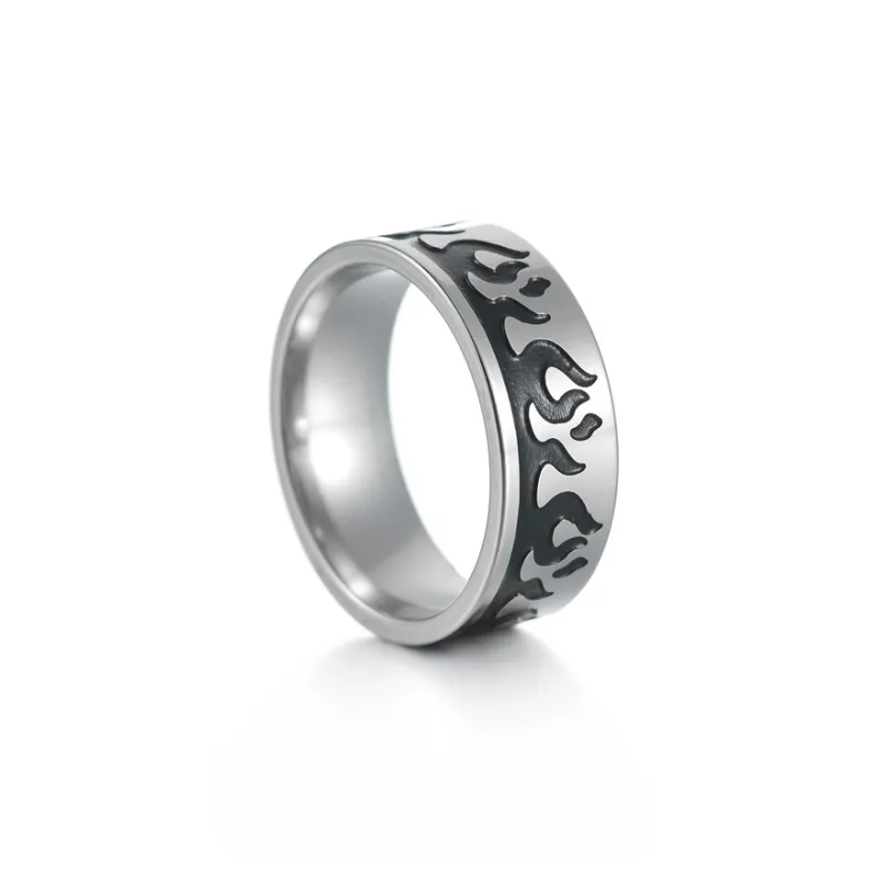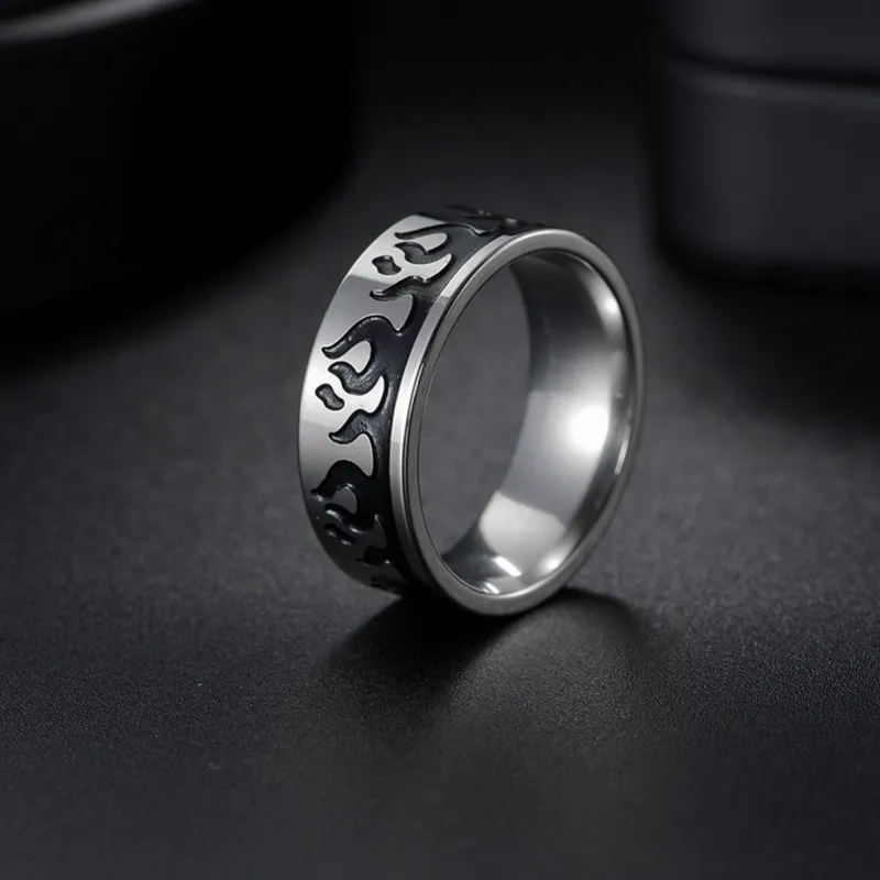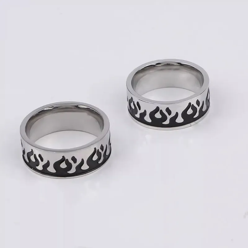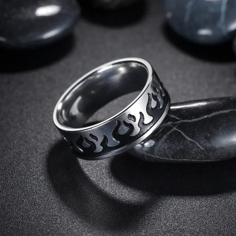 FOREVER MELODY Кольца из титанового сплава Унисекс Серебристый Черный