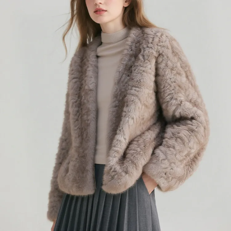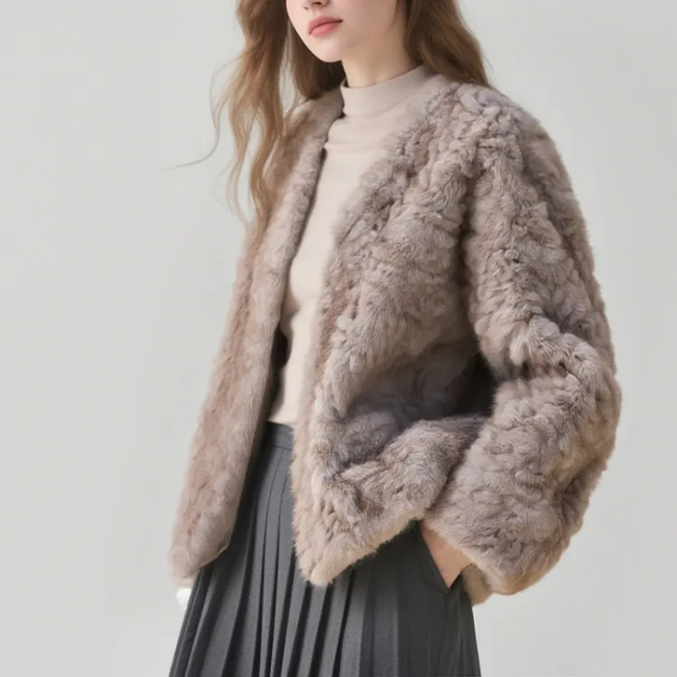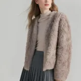 FOSS PHIL Цветочный Верблюжий кофейный Женские Меховые изделия