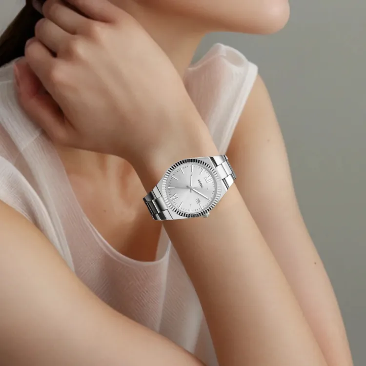 FOSSIL Наручные часы Кварцевый механизм Нержавеющая сталь Ремешок 38 мм Серебристый циферблат Женские часы
