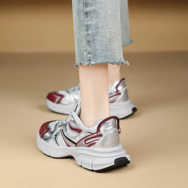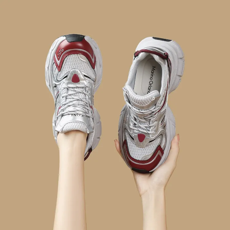 FOXER x MARINO ORLANDI Износостойкий и Легкий Низкий Топ Толстая Подошва Кроссовки Женские Серый Красный