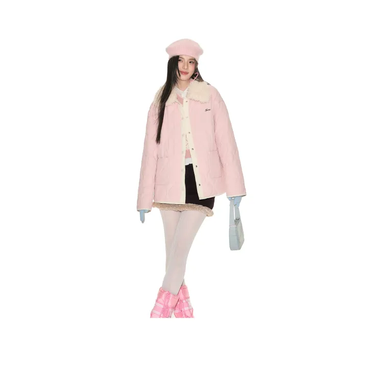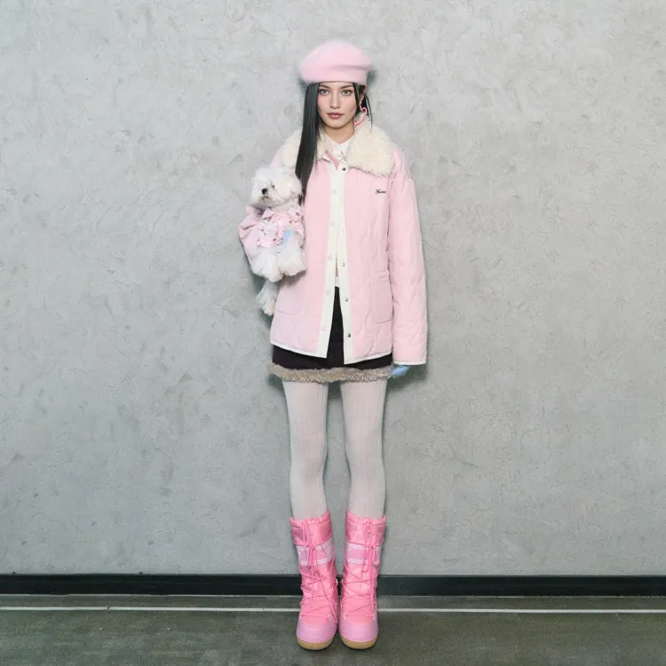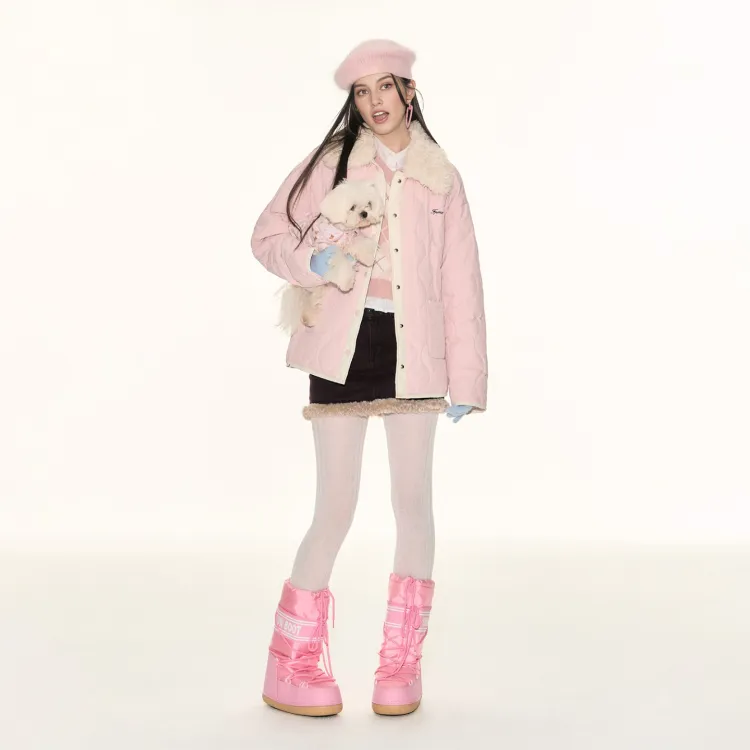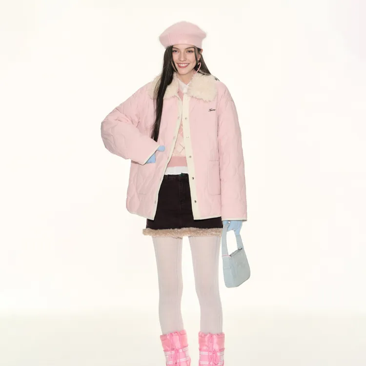 Розовый хлопковый пуховик