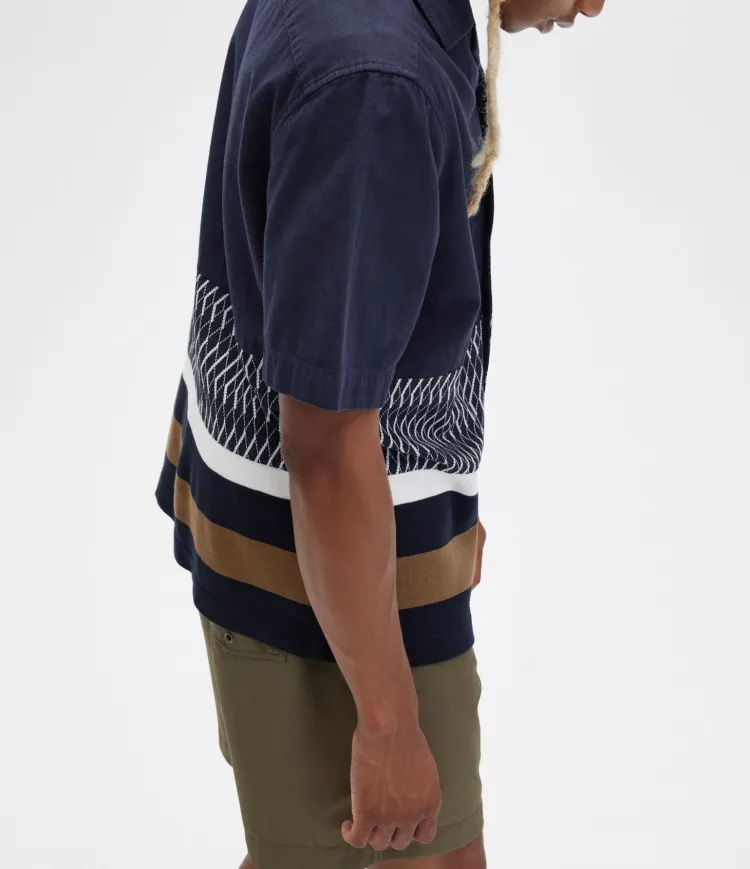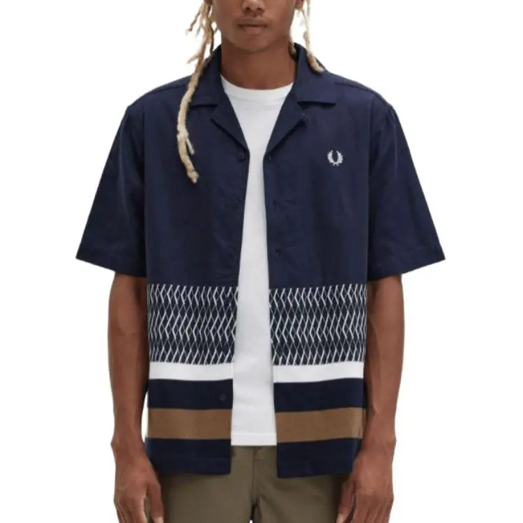 FRED PERRY Вязаная модель Панель Revere Ожерелье-чокер Рубашка Мужская Морской синий