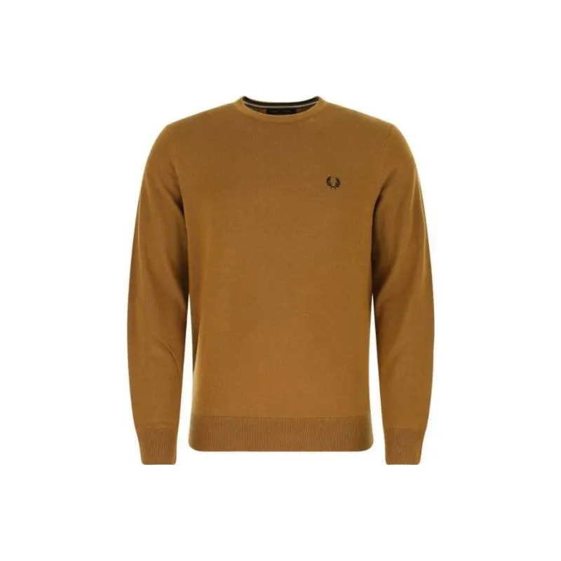FRED PERRY Круглый вырез Облегающий Длинный рукав Трикотаж Мужской Коричневый