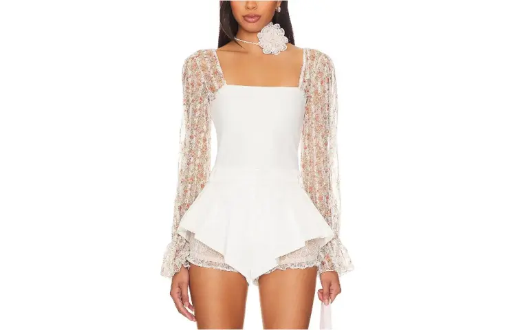FREE PEOPLE × Intimately FP Gimme Butterflies Коллаборация T-рубашка Женская Белая