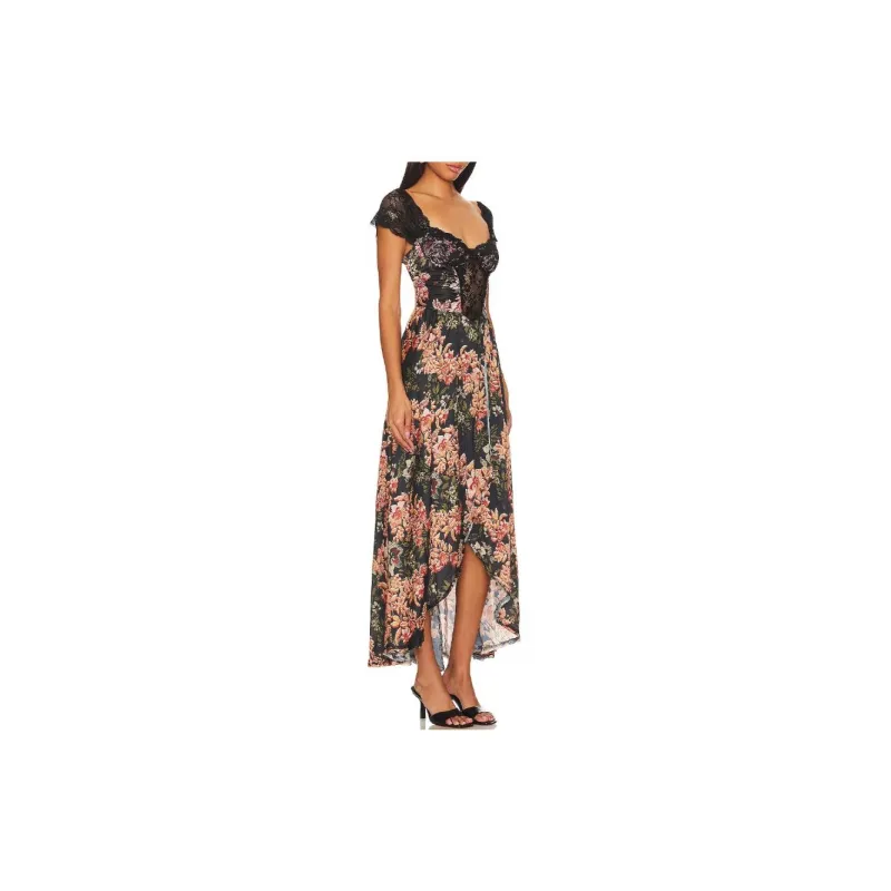FREE PEOPLE Короткое платье с короткими рукавами женское черное