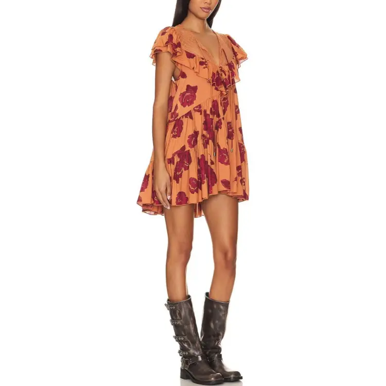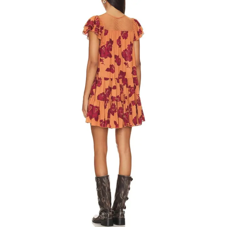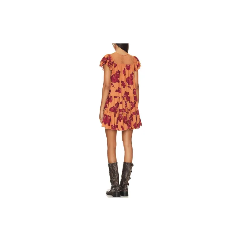 FREE PEOPLE Короткое платье с короткими рукавами женское оранжевое