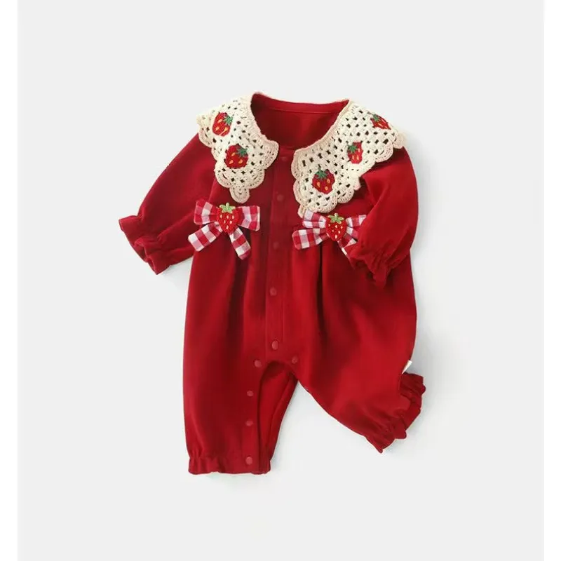Цвет:Красный однослойный комбинезон с отложным воротником C-6, клубничного цвета