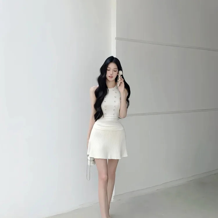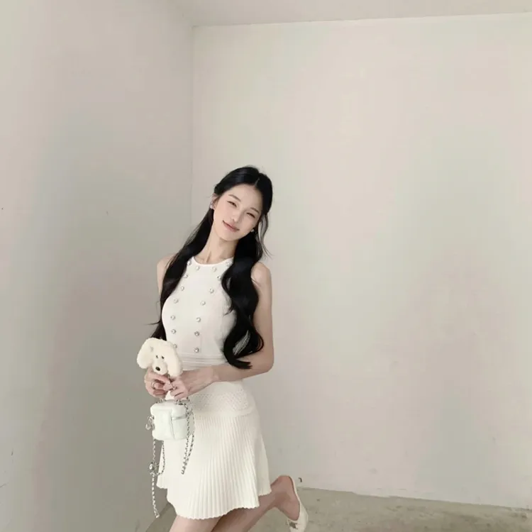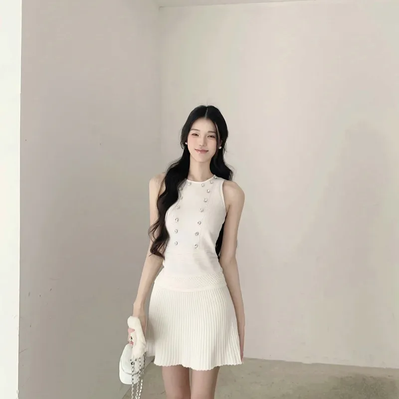 Комплект:Белая майка + вязаная юбка