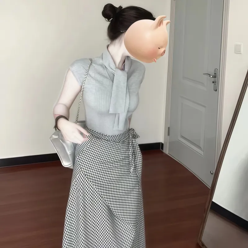 Цвет:Серая трикотажная ткань юбка