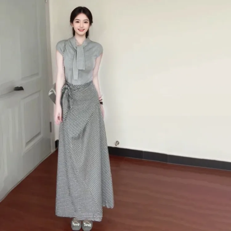 Серая трикотажная ткань юбка