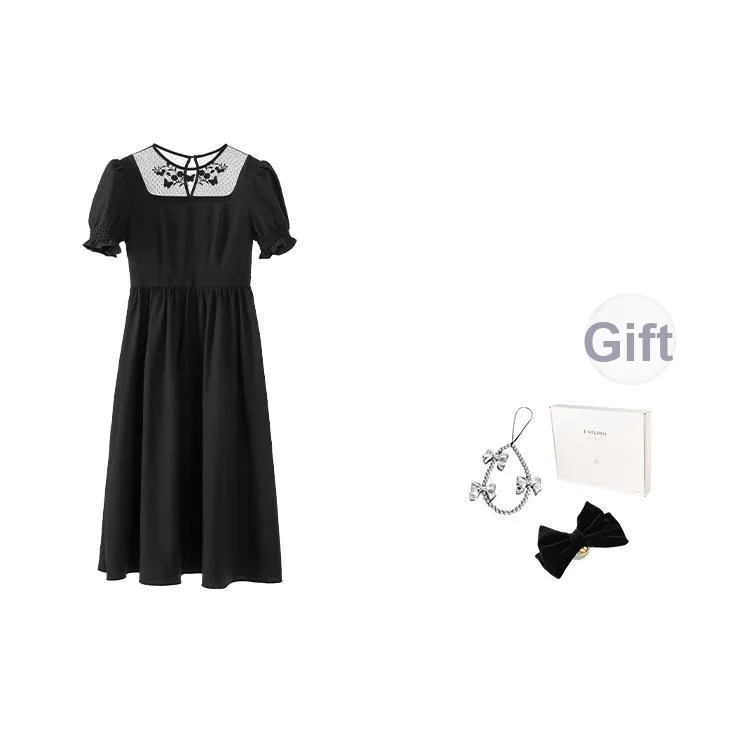 Fstudio Французский Кружево С утяжкой на талии MID Длина Короткий Рукав Платье Женское