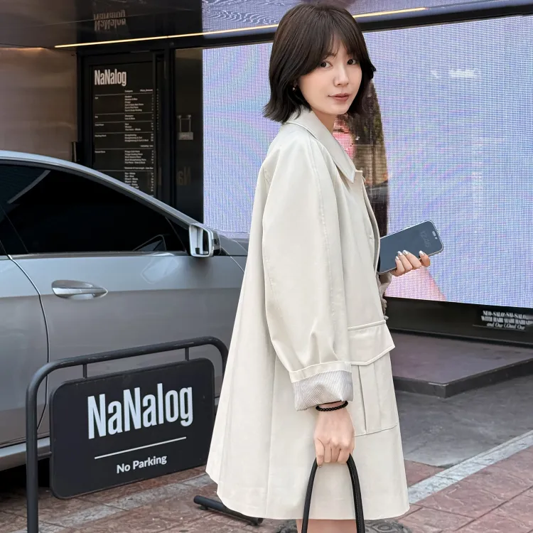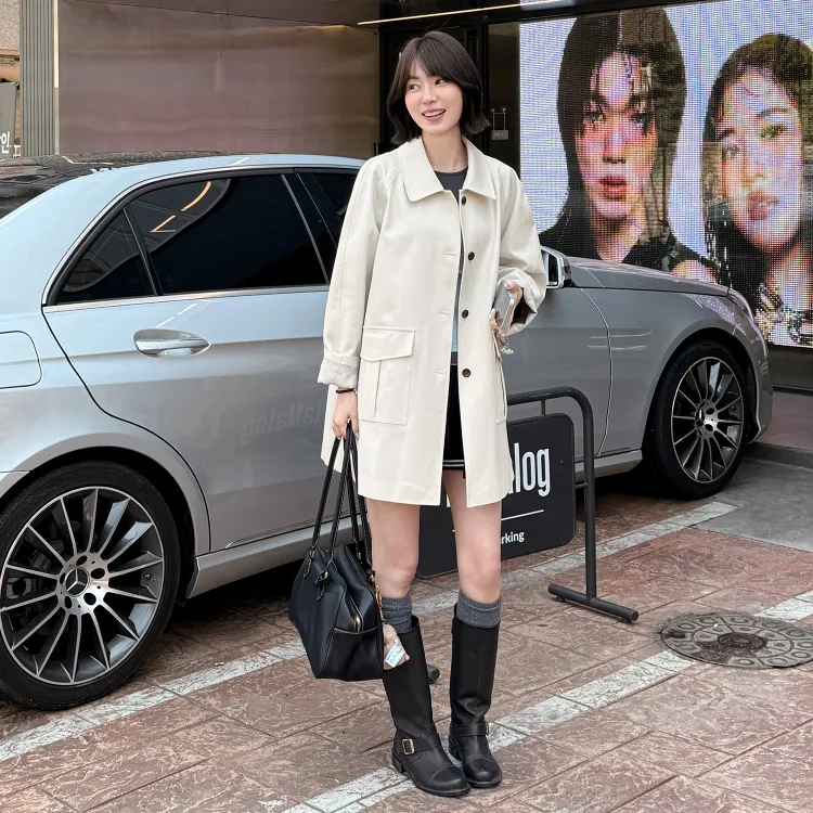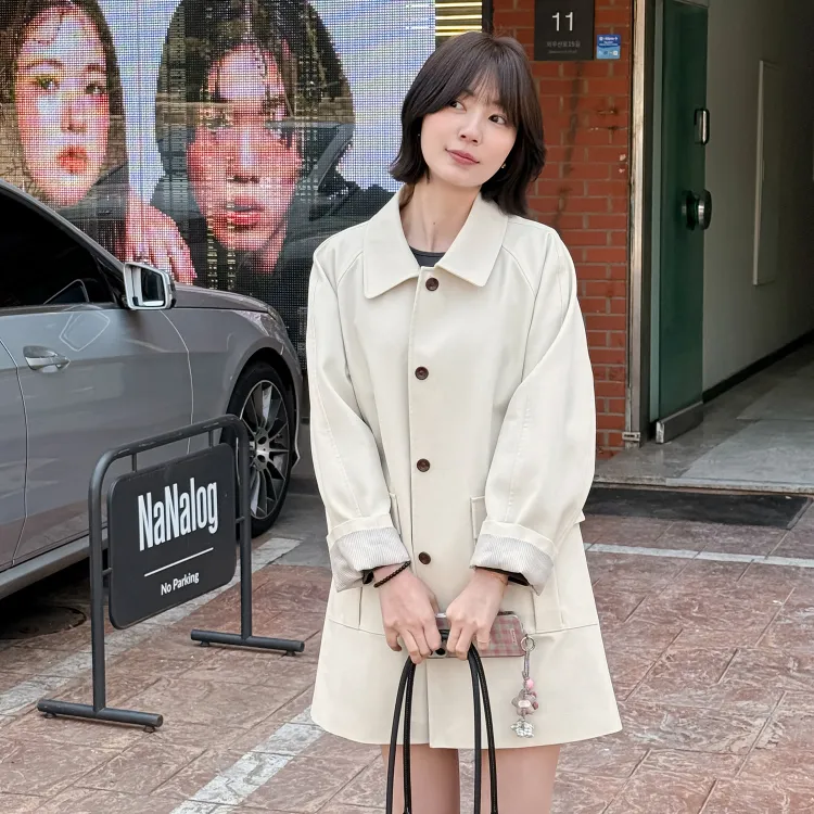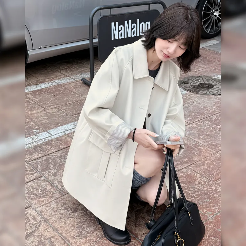 Fstudio Korean EFFORTLESS Дизайн Коммутирование Большой карман Тренчкот Женские Экрю