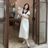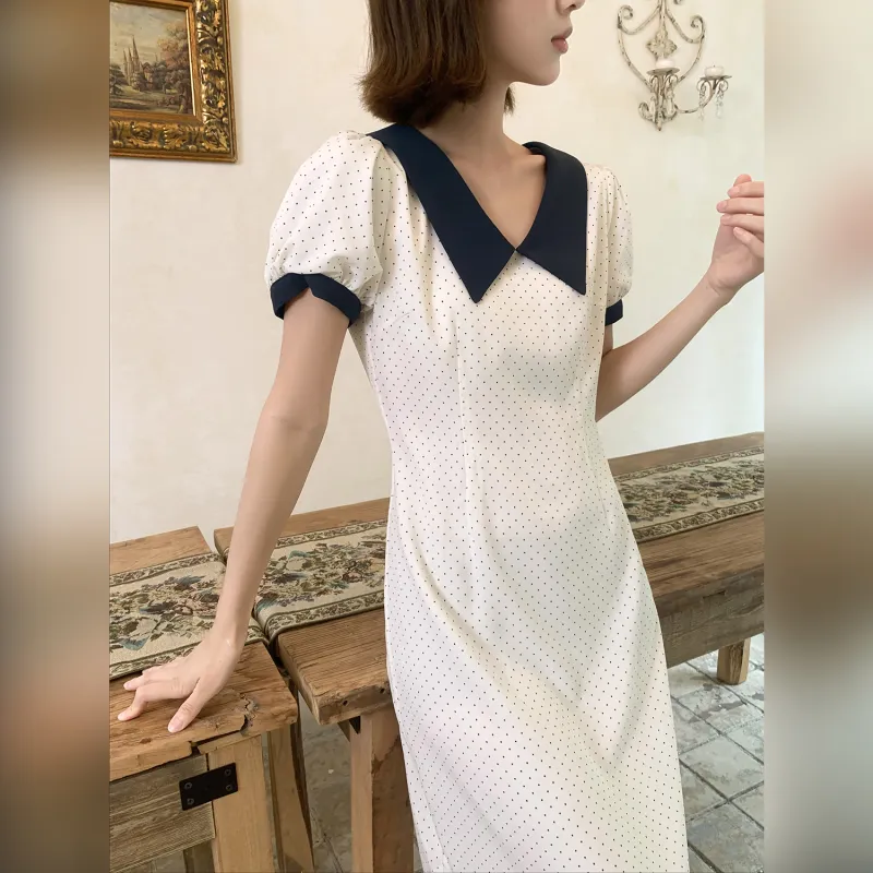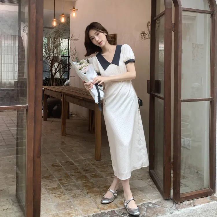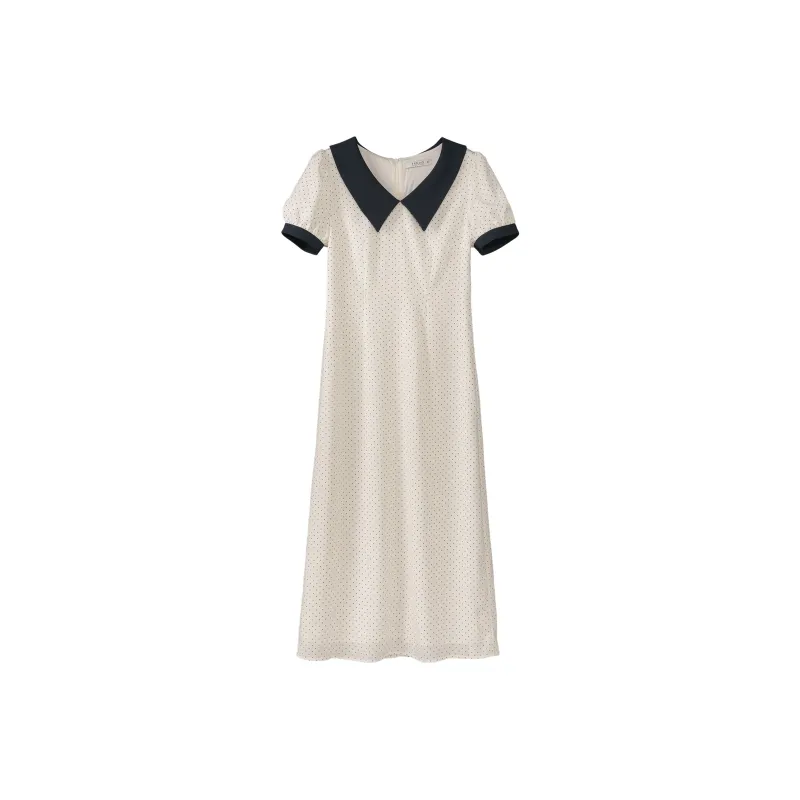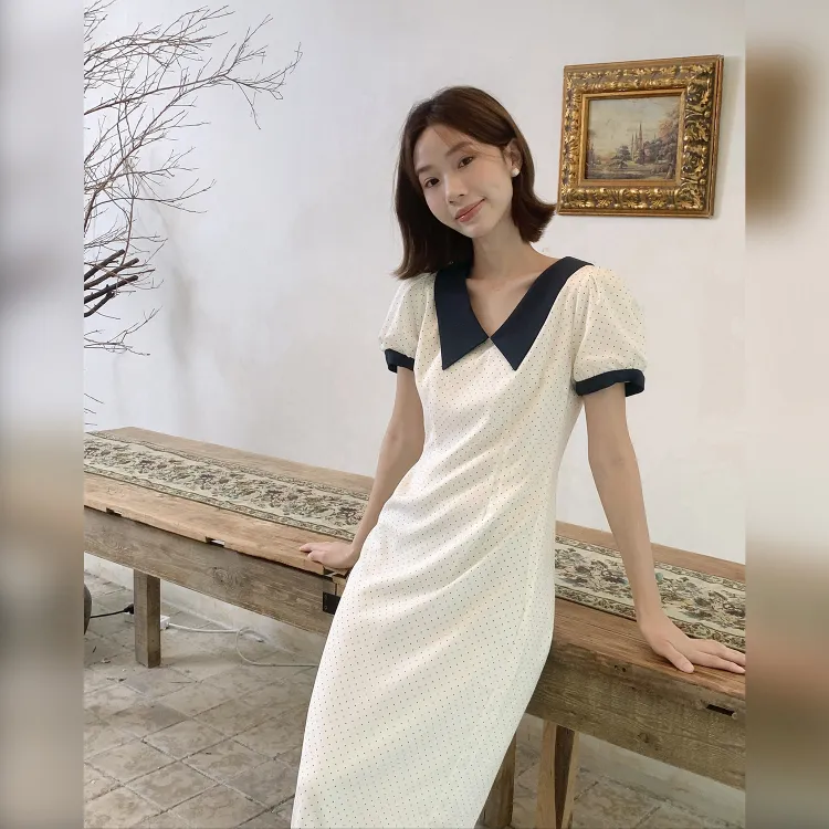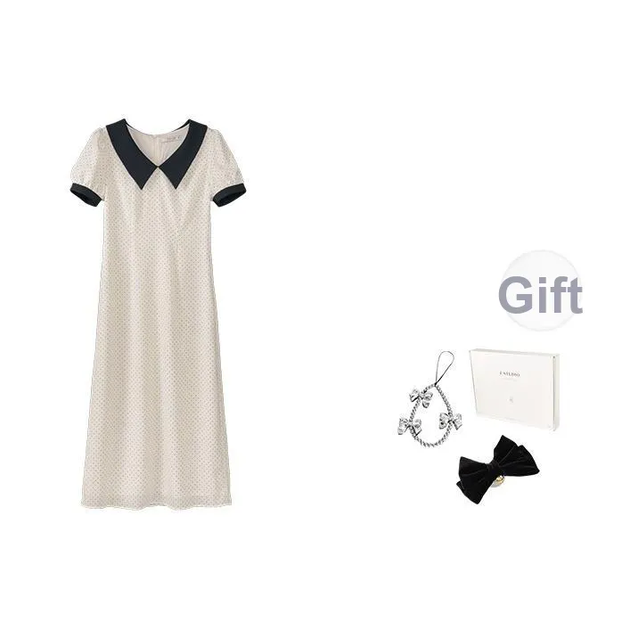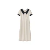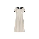 Fstudio Корейский стиль Элегантность Цветовой блок С утяжкой на талии Короткий рукав Платье Женское Бежево-абрикосовое