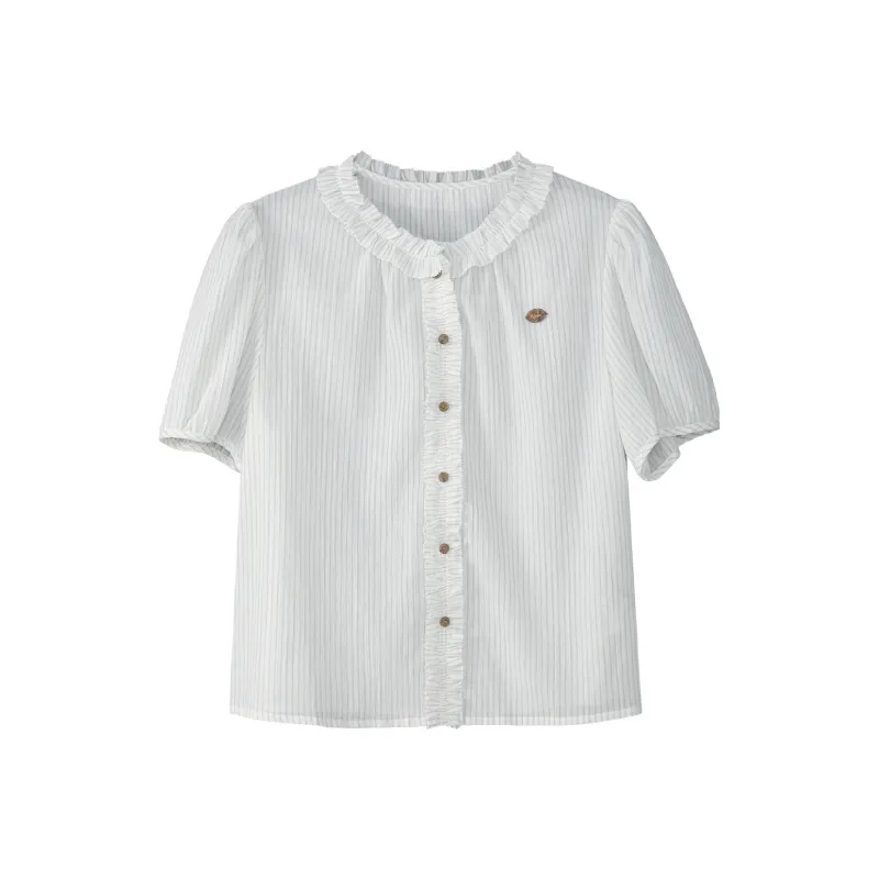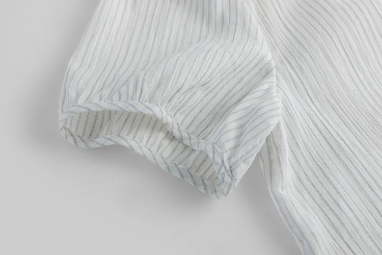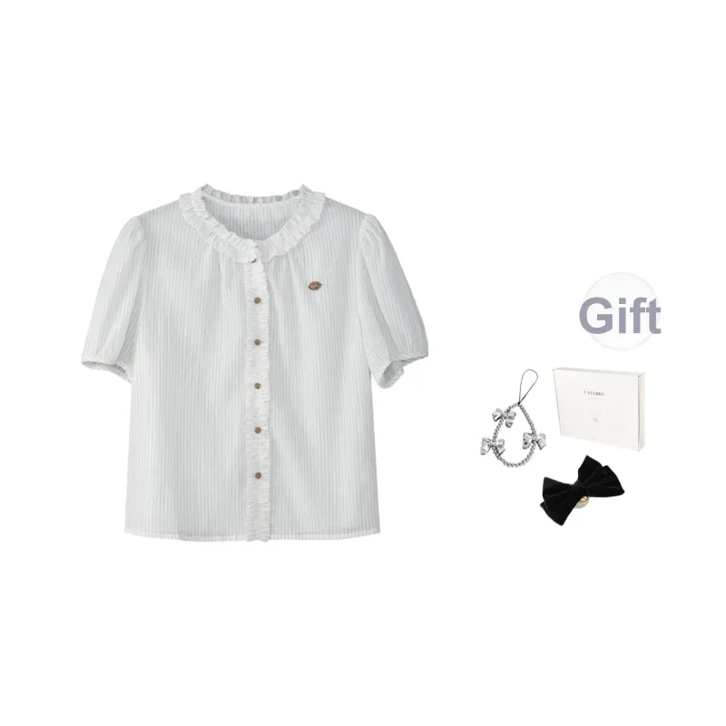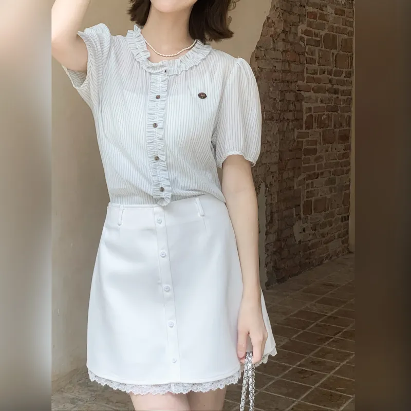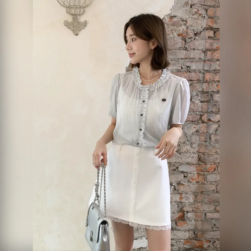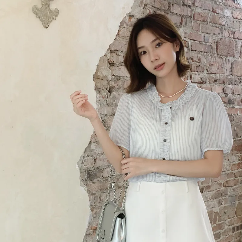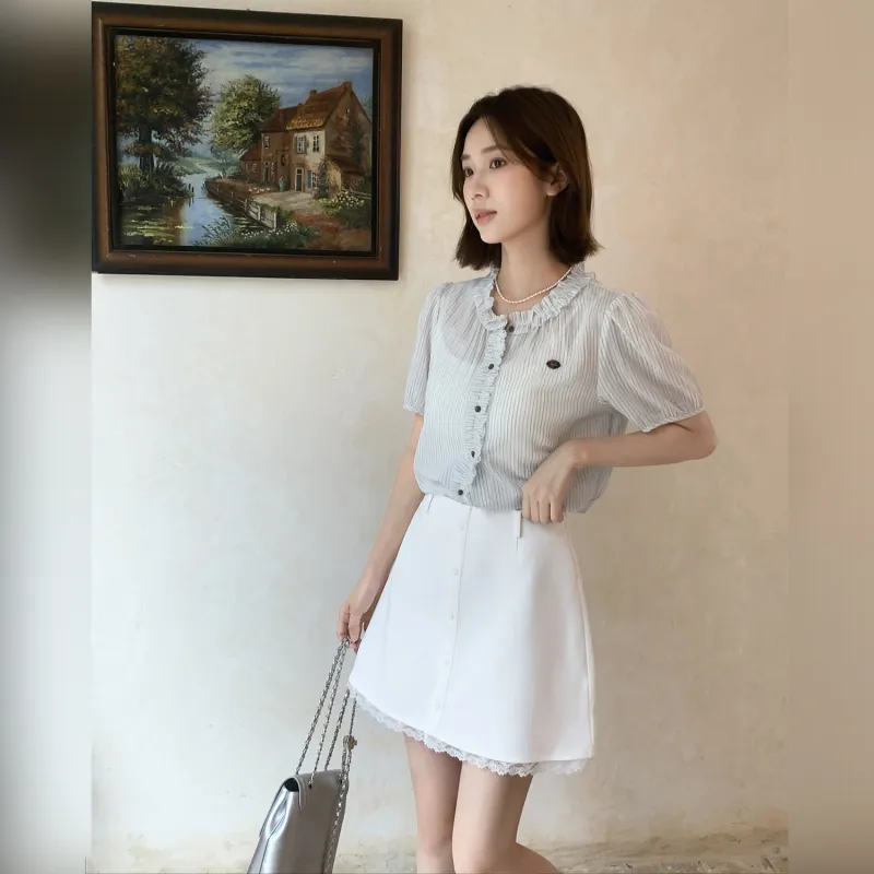 Fstudio Корейский стиль Lazy Feel Цветовой блок STRIPES SHORT Рубашка с короткими рукавами Женская