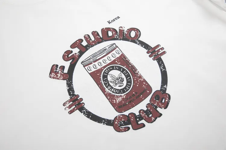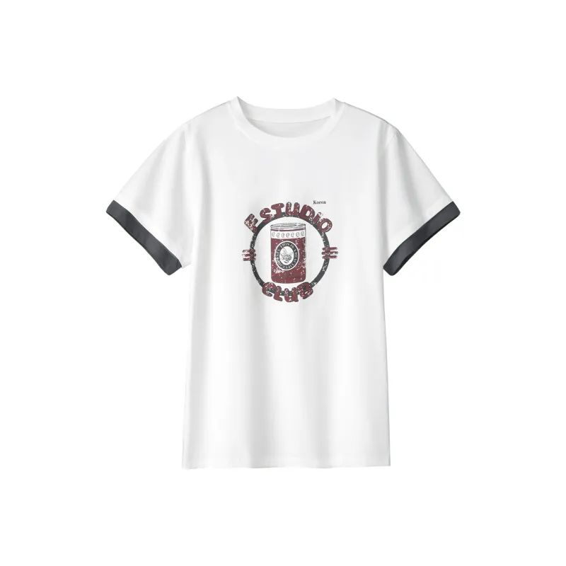 Fstudio Корейский стиль Relaxed Принт Свободный крой Топ Круглый вырез Универсальный Короткий рукав Т-рубашки Женские