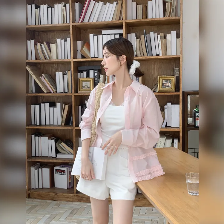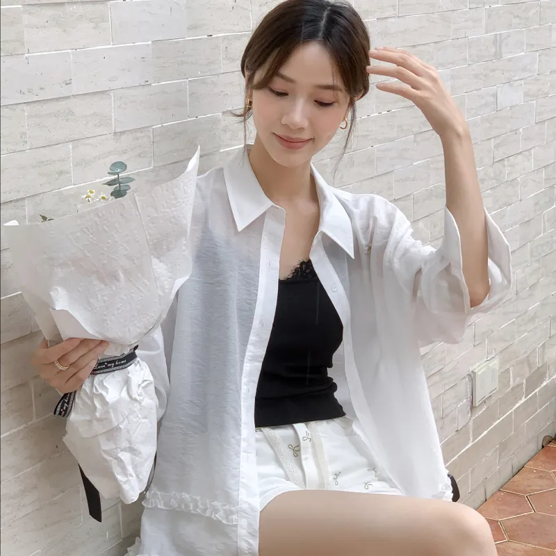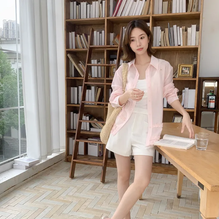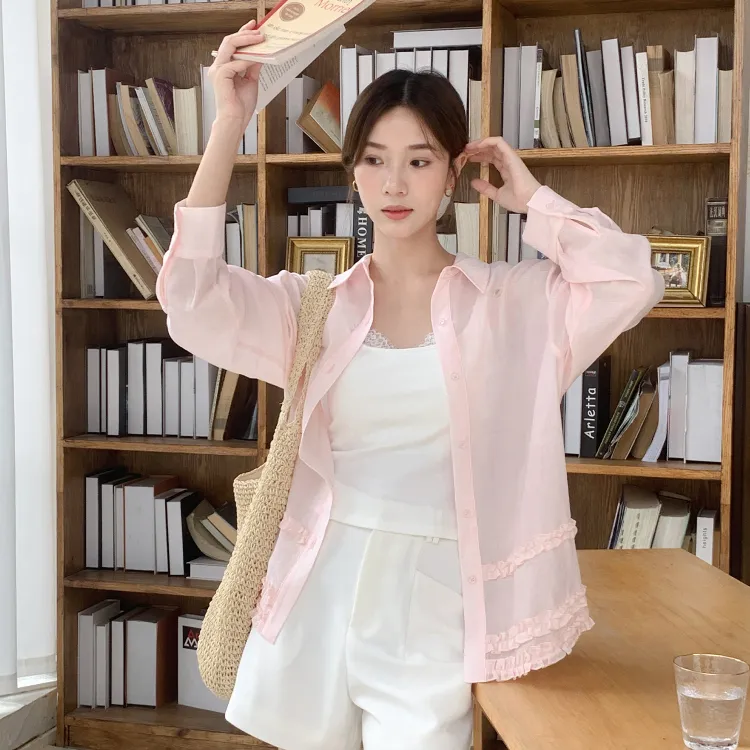 Fstudio Летний Корейский стиль Тканевый And Элегантный Длинный рукав Рубашка Женская