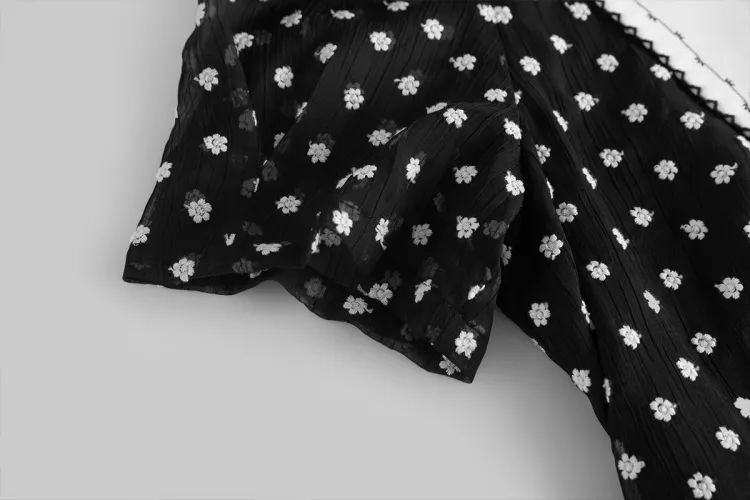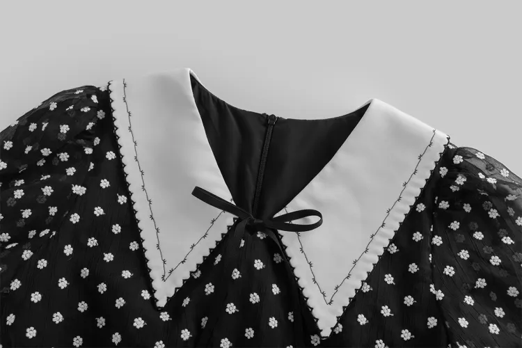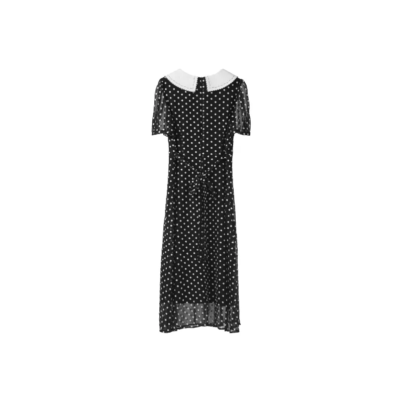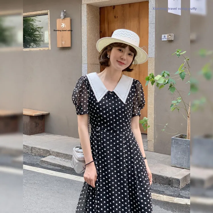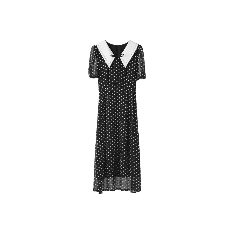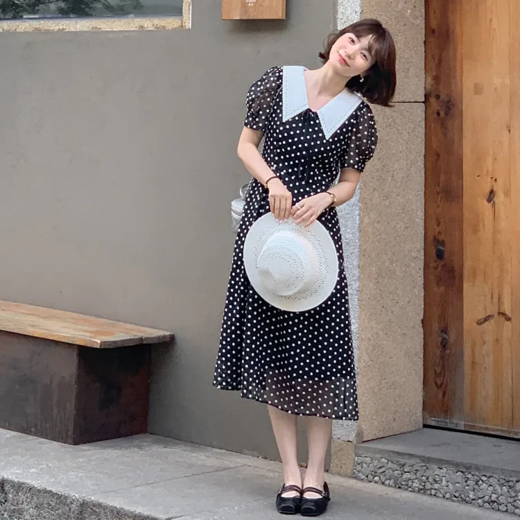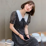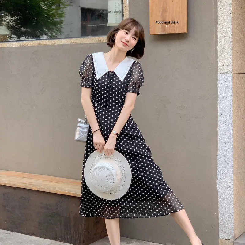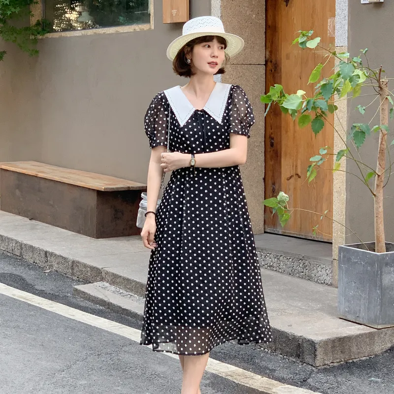Fstudio Летний Корейский стиль Мягкий And Элегантный Модный Гороховый узор Короткий рукав Платье Женское