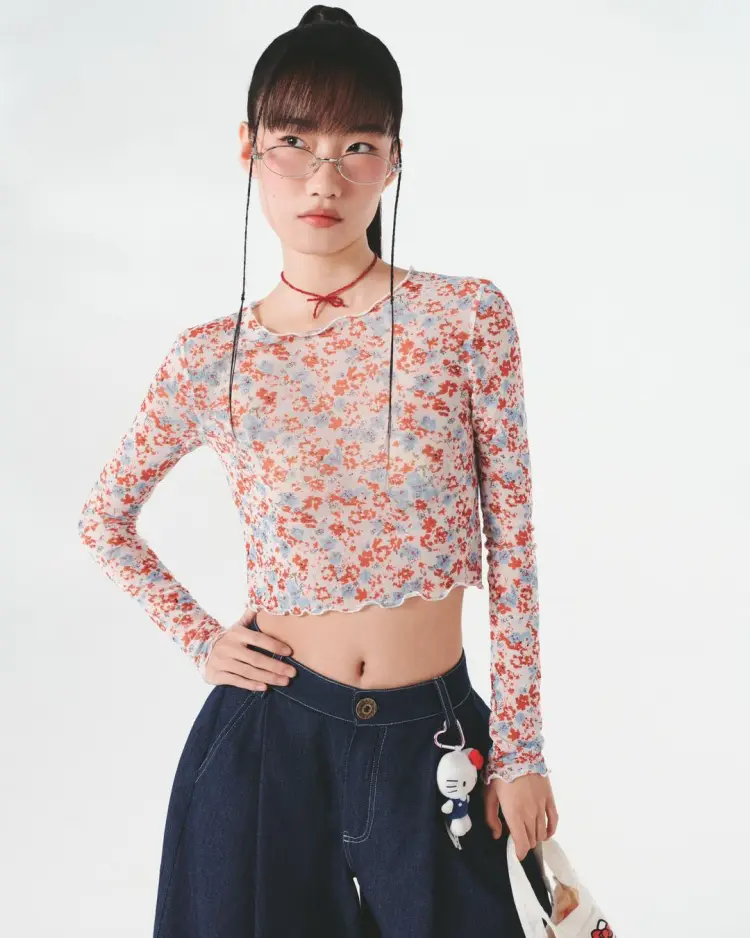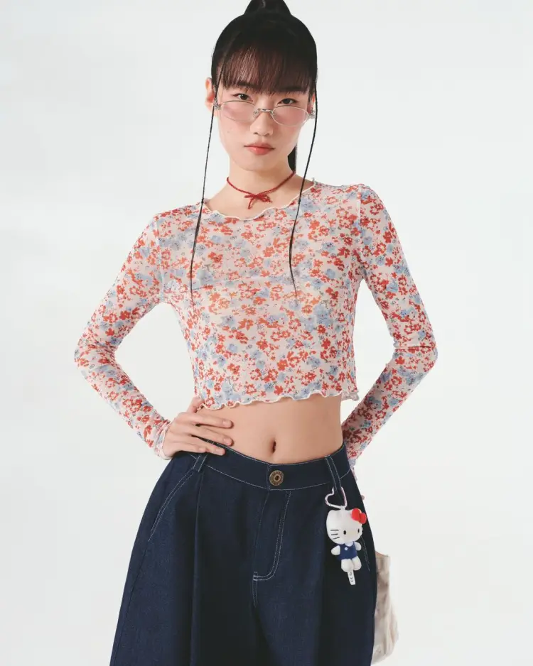 FTTHR Оранжевый Красный Цветочный Женский Короткий Топ