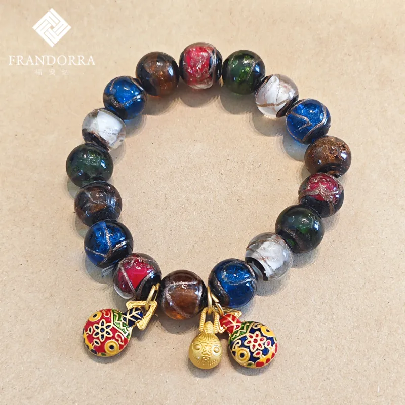 Браслет с бусинами из стекла и золота "Поглощающий зверь" (Мужской + Женский)