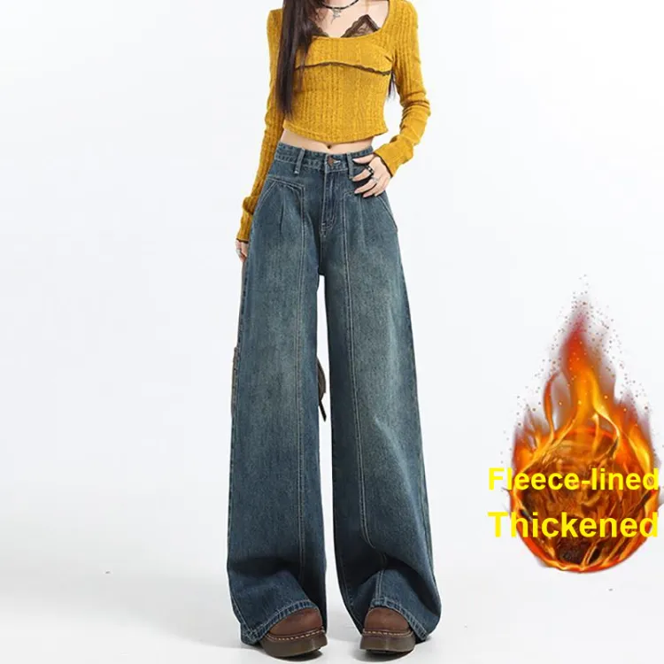 Винтажные синие штаны с флисовой подкладкой