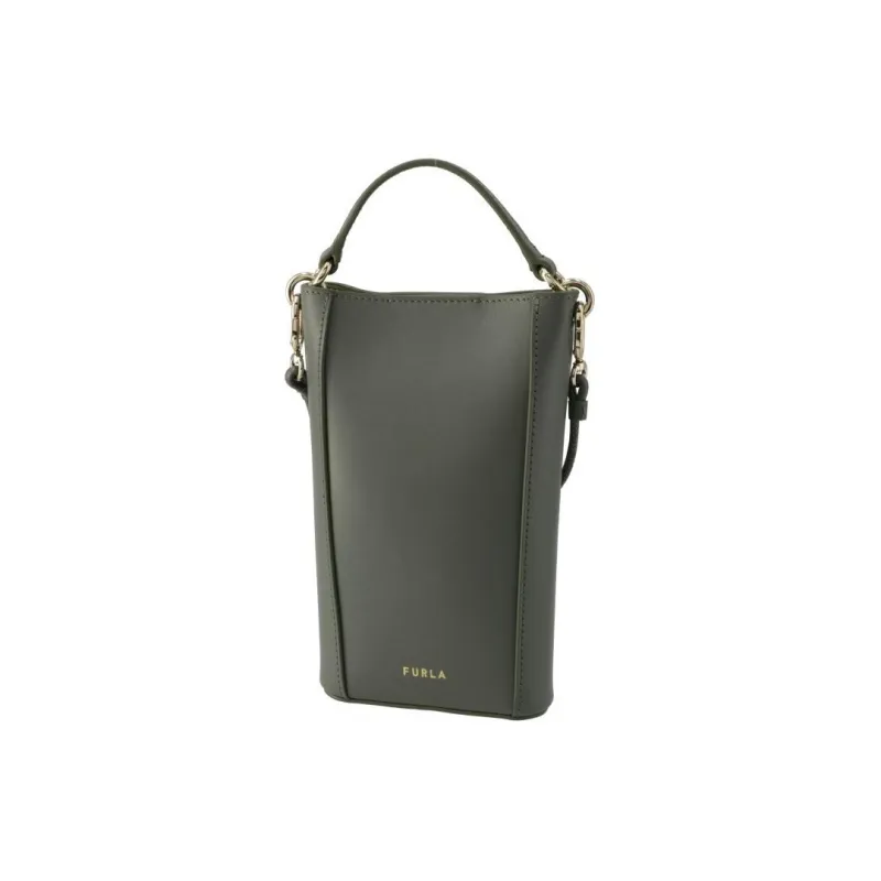 Furla 1927 Collection Телячья кожа Чехол для телефона Портативный Crossbody Сумка Сумка через плечо Мини Женская Кактусовая Серо-зеленая