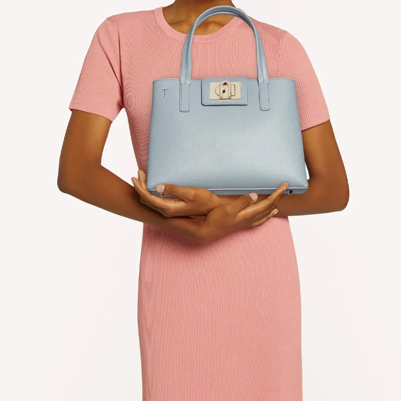 Furla 1927 Collection Кожа Тоут Сумка Сумка для покупок Сумка через плечо Сумка среднего размера Женская Небесно-голубая