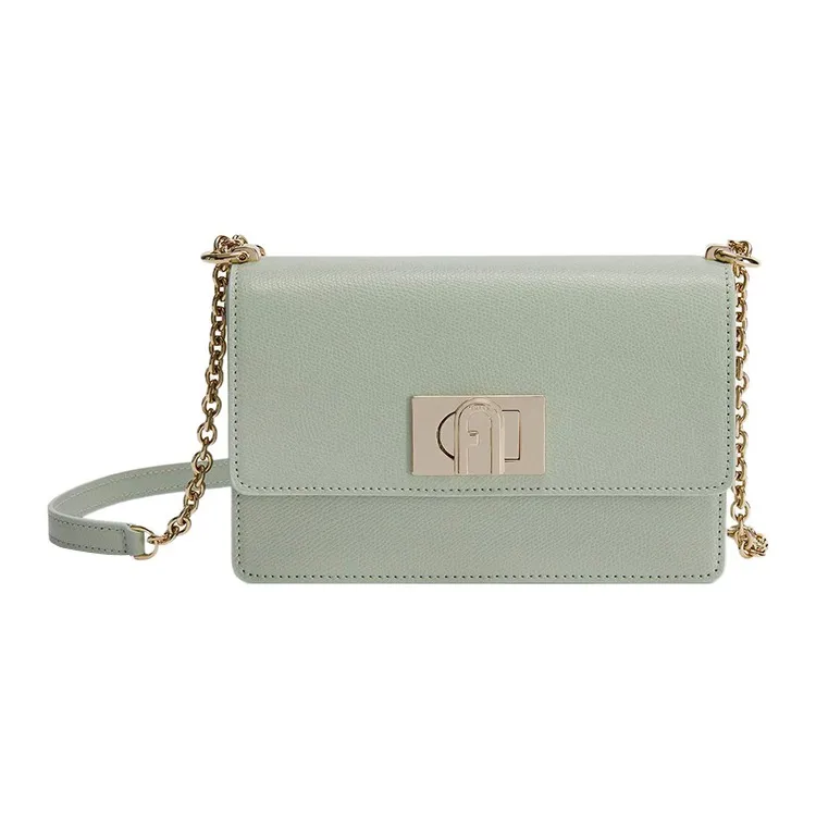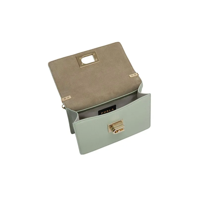Furla 1927 Collection Текстурированная кожа Маленькая квадратная сумка Сумка через плечо Мини Женская Мятно-зеленый