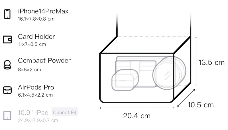 Д20,4*Ш10,5*В13,5 см