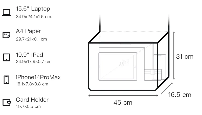 Д45*Ш16,5*В31см