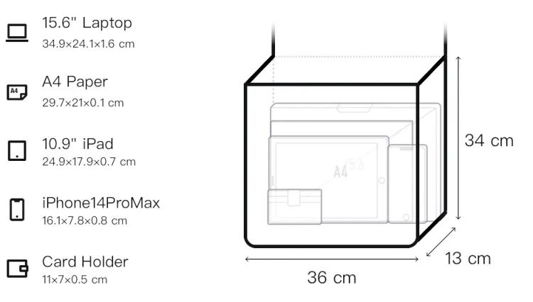 Длина (размер в длину): 36 см, Ширина корпуса: 13 см, Длина корпуса: 34 см