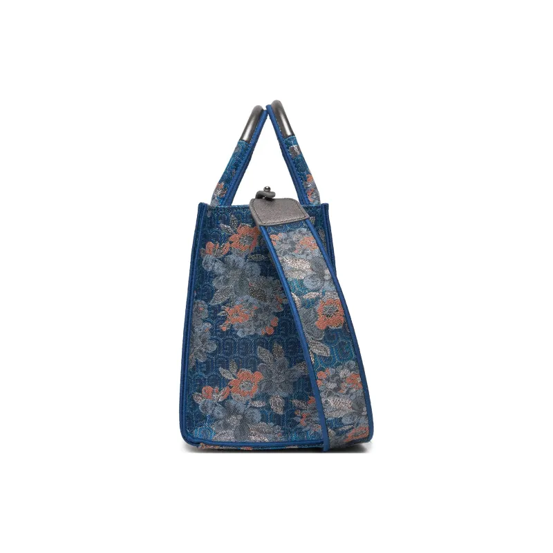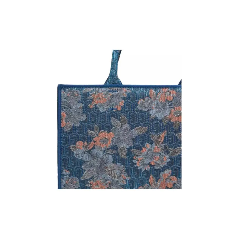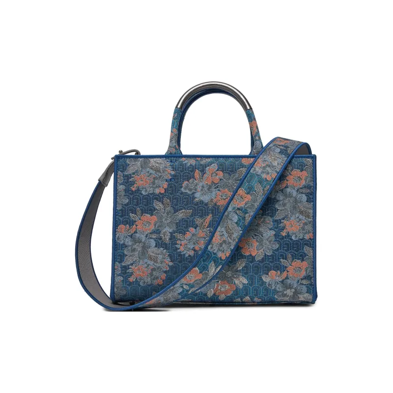 Furla Ткань с кожаными вставками Тоут Сумка Сумка для покупок Сумка через плечо Сумка Маленькая Женская Многоцветная и Синяя