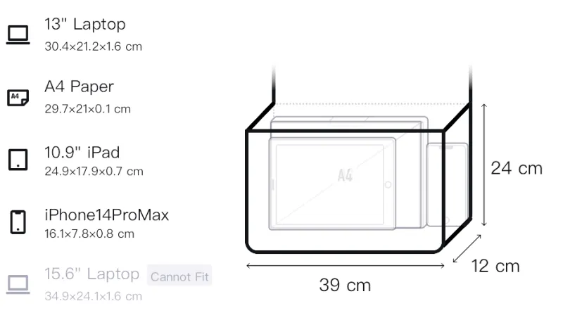 Длина (размер в длину): 39 см, Ширина корпуса: 12 см, Длина корпуса: 24 см