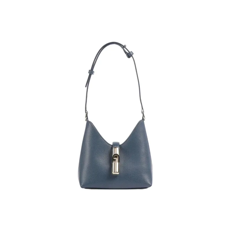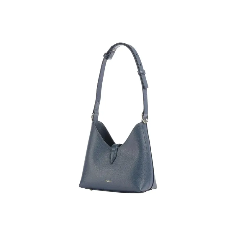 Furla Сумка через плечо из крупнозернистой текстуры коровьей кожи мини женская темно-синяя