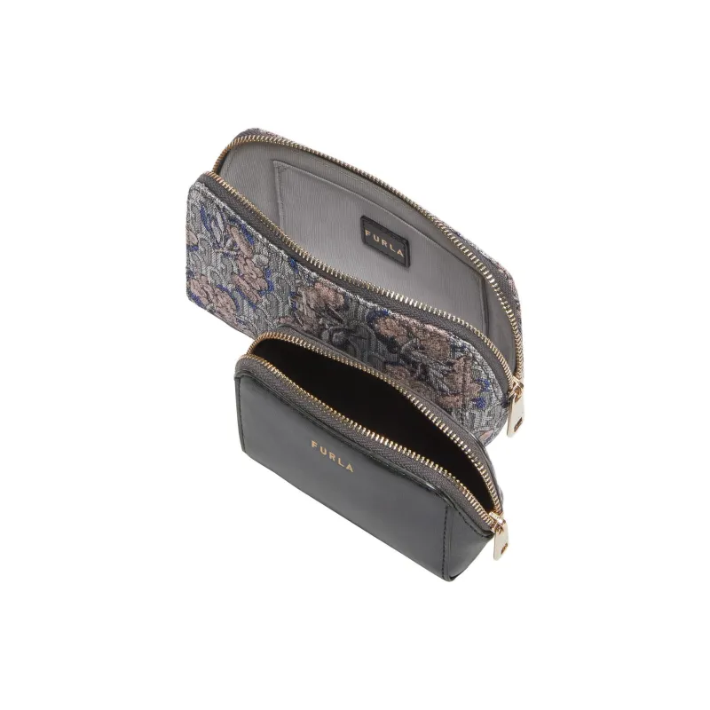 Furla Жаккард с кожаными вставками клатч мини женский серый и синий