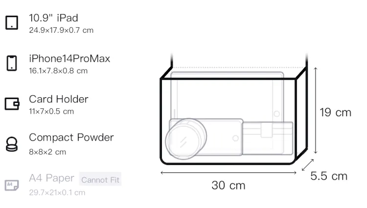 Длина 30 см * Ширина 5,5 см * Высота 19 см