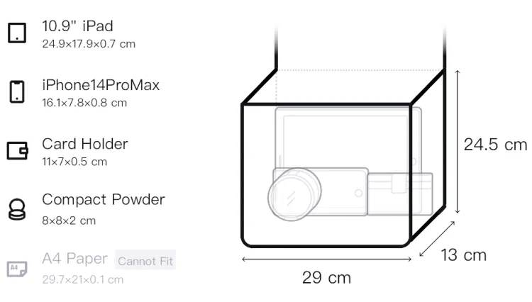 Длина (размер в длину): 29/34 см, Ширина корпуса: 13 см, Длина корпуса: 24,5 см