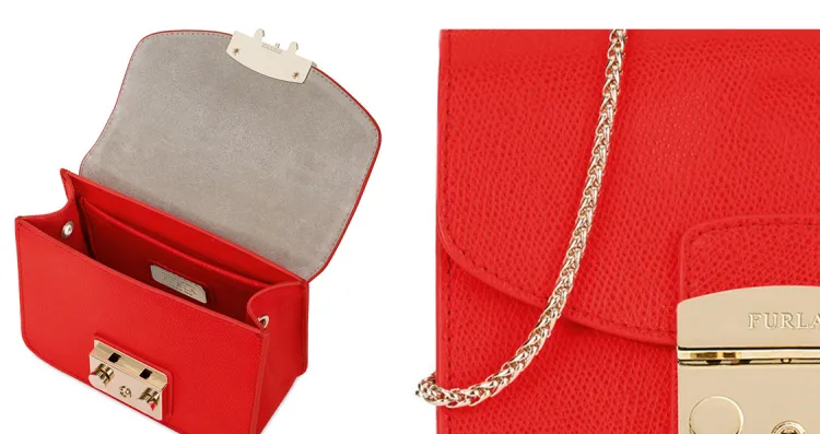 Furla Metropolis Collection Кожаная маленькая квадратная сумка через плечо мини женская цвет вермильон