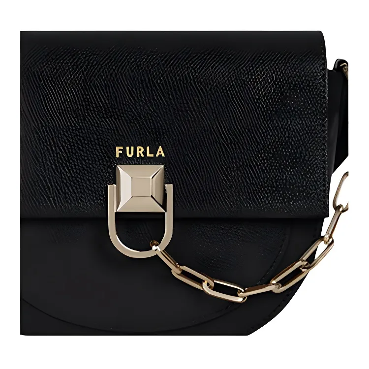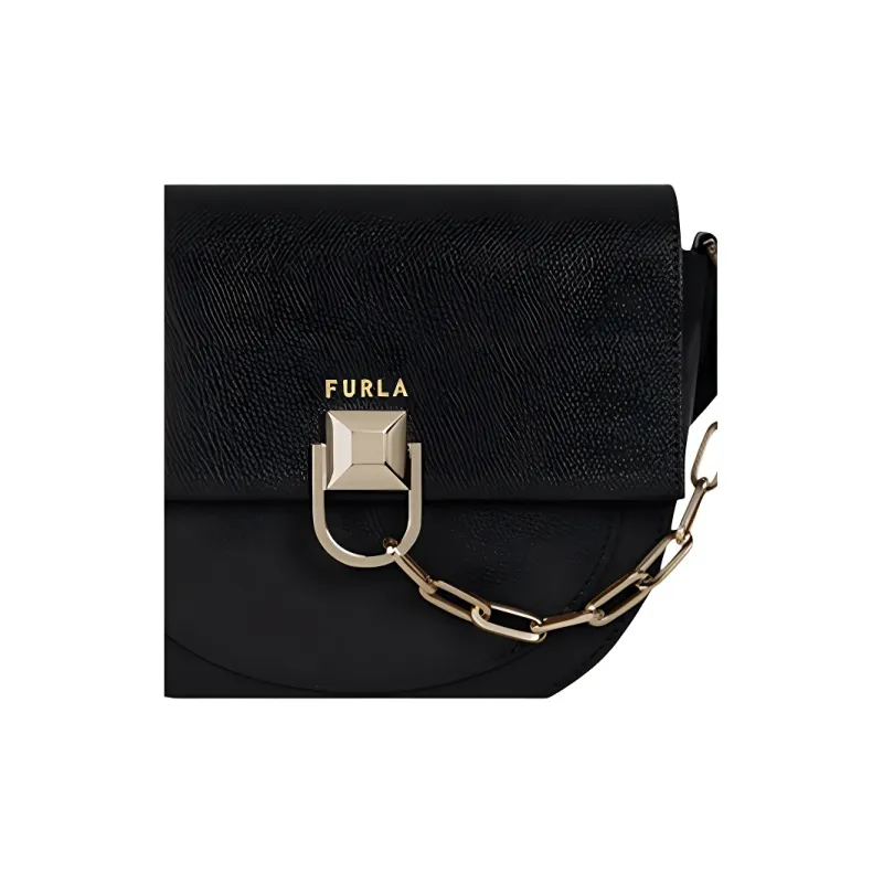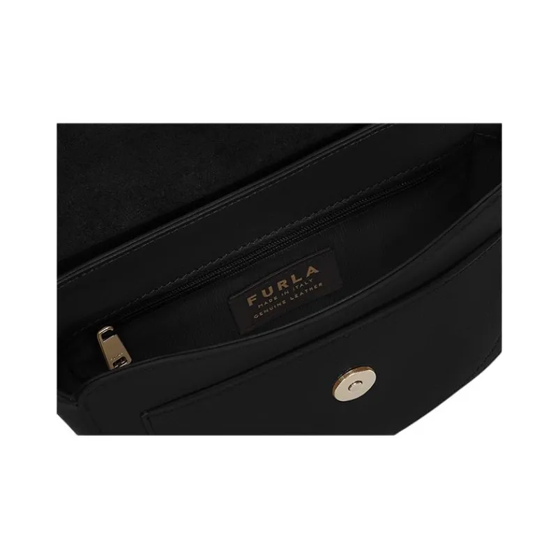 Furla Miss Mimi Collection Коровья кожа Седло Сумка Плечевая сумка Мини Женская Черная