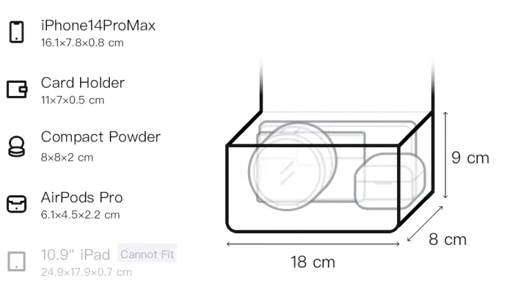 Д18*Ш8*В9см