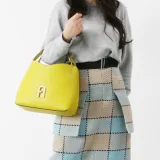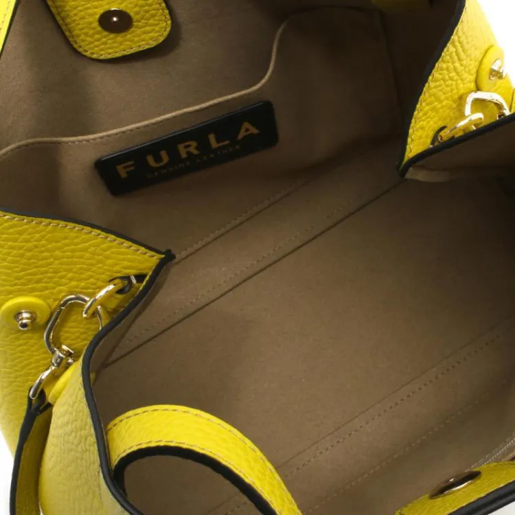 Furla Primula Рельефная Телячья Кожа Портативная Сумка через плечо Сумка на плечо Маленькая Женская Желтая Канарка