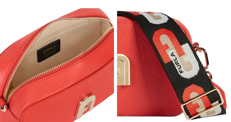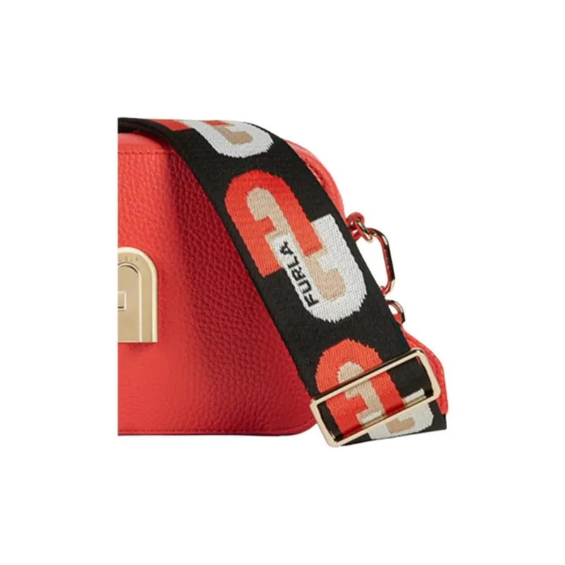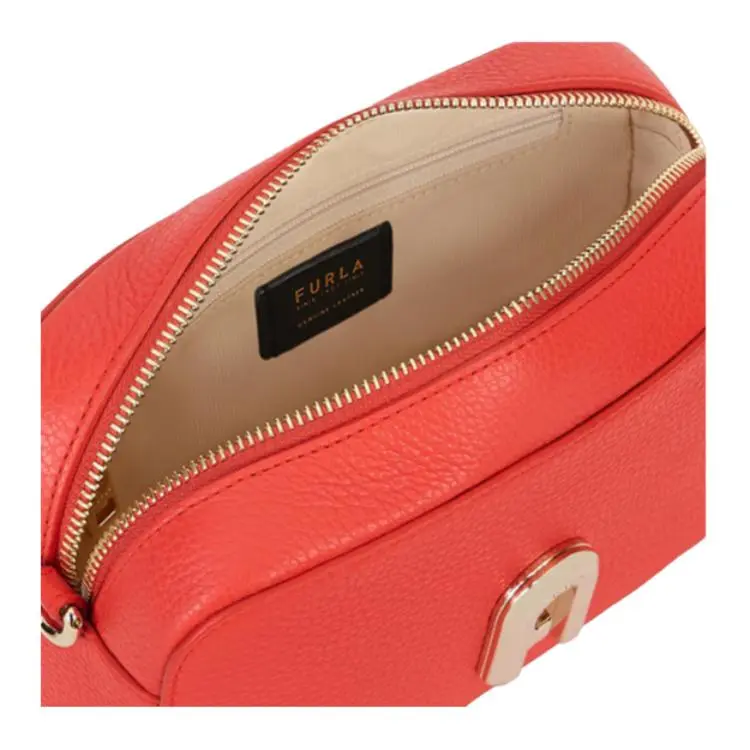 Furla Sleek Collection Телячья кожа Camera Сумка Сумка через плечо Мини Женская Оранжевая Красная